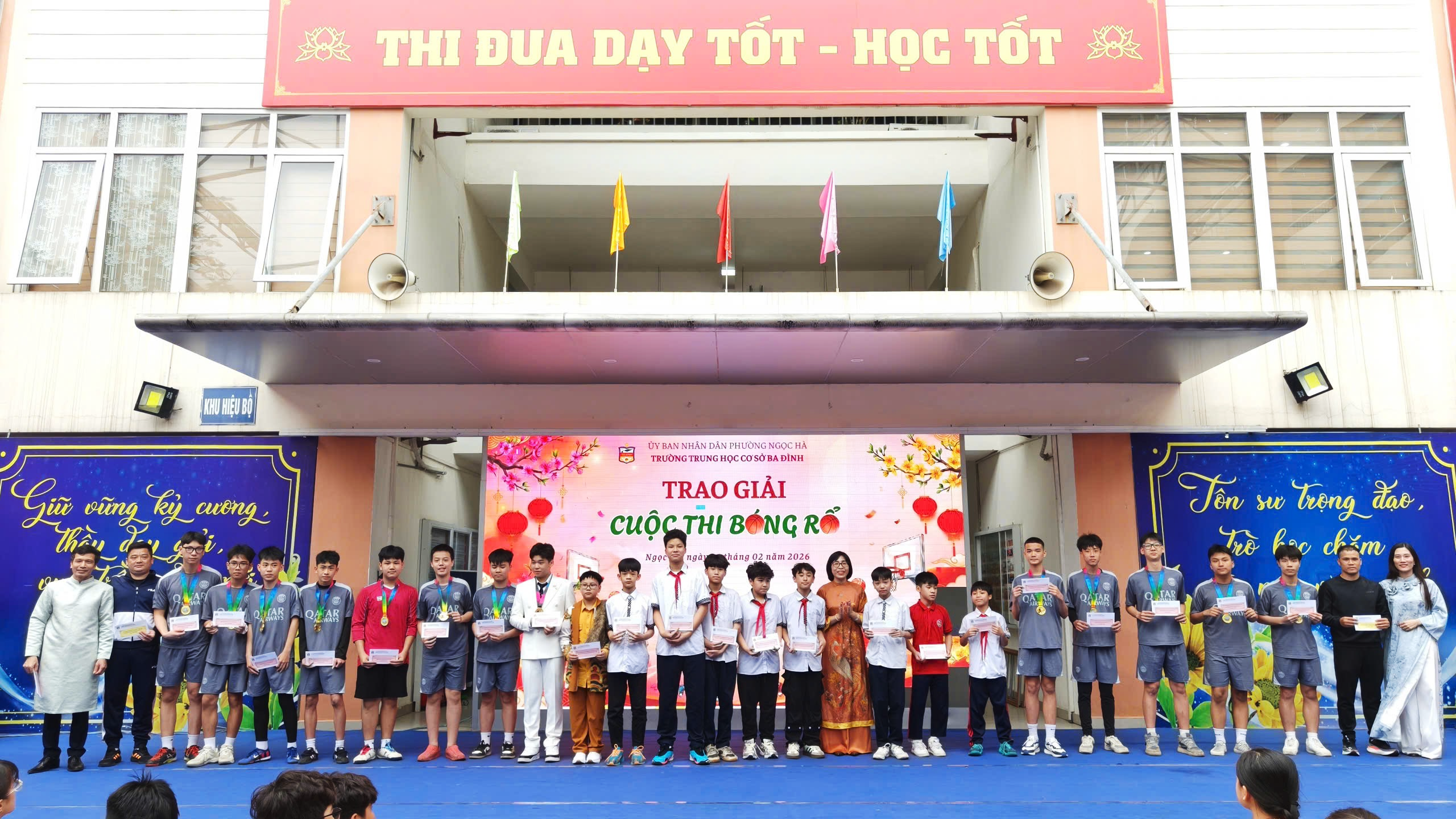 Sau phần thi đầy ấn tượng ấy, Ban Giám khảo đã bước vào thời gian làm việc nghiêm túc và công tâm để cân nhắc, đánh giá toàn diện và lựa chọn ra Top 5 cặp thí sinh xuất sắc nhất bước tiếp vào vòng thi ứng xử. Trong khi Ban Giám khảo tập trung hội ý, Ban Tổ chức đã trang trọng tiến hành lễ trao giải cho hai đội tuyển bóng rổ và bóng đá của nhà trường - những tập thể đã đạt thành tích nổi bật trong thời gian qua. Cùng với đó, hai thầy huấn luyện viên tận tâm đồng hành và dẫn dắt các đội tuyển cũng được vinh danh trong niềm tự hào và sự tri ân sâu sắc. Những tràng pháo tay vang lên không ngớt, lan tỏa tinh thần thể thao, ý chí bền bỉ và sự đoàn kết của học sinh Ba Đình.