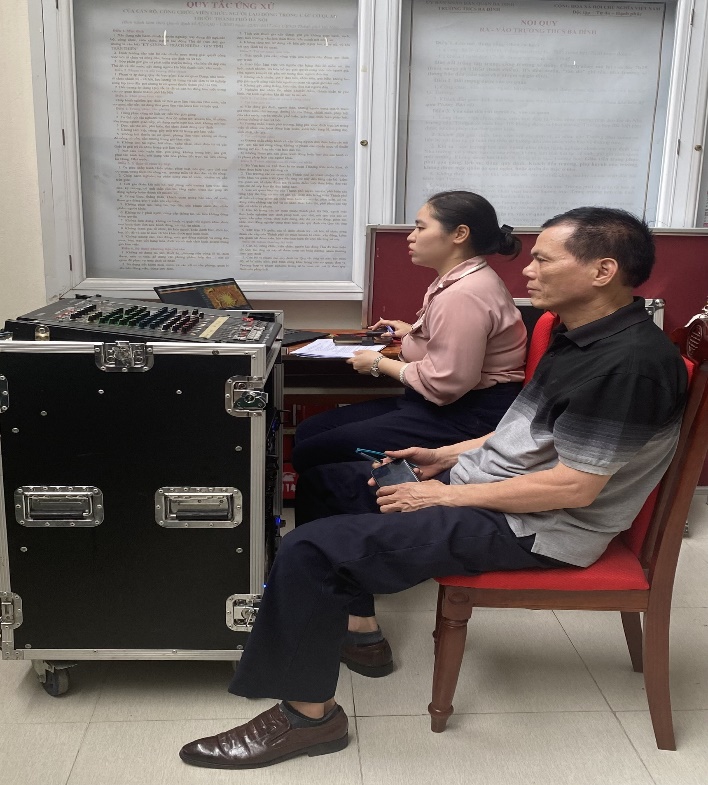 Không chỉ vậy, cô Ngân còn cùng Ban phụ trách Đội hỗ trợ Ban tổ chức xây dựng toàn bộ slide trình chiếu cho buổi Lễ kỉ niệm với sự kỳ công và cẩn trọng. Và bất cứ lúc nào cần tập luyện hay tổng duyệt chương trình, cô sẵn sàng cùng các bác giám thị chuẩn bị đầy đủ hệ thống máy tính, âm thanh. Có thể nói cô Ngân và những bác giám thị chính là những con người thầm lặng cho sự tỏa sáng trên sân khấu.