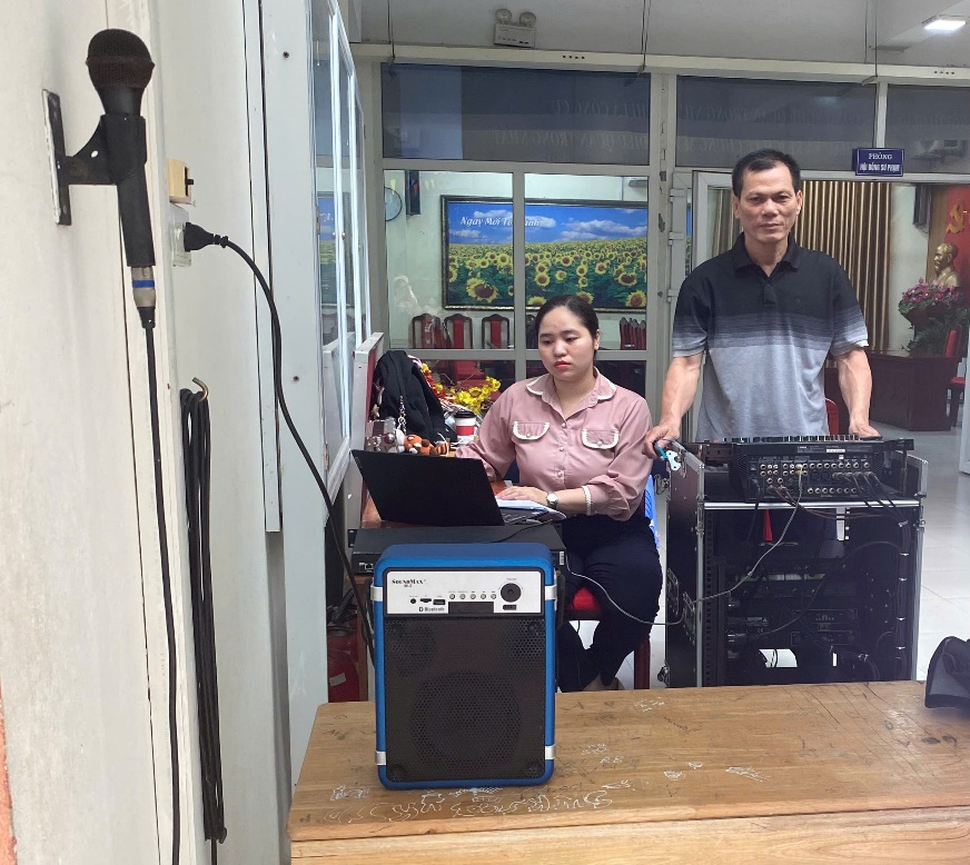 Các bác bảo vệ hỗ trợ chuẩn bị cơ sở vật chất cho buổi Lễ