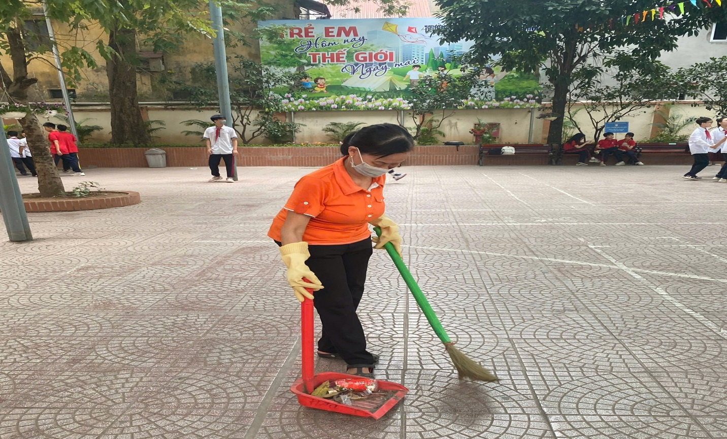 Bác lao công nhỏ bé nhưng luôn miệt mài, cần mẫn làm sạch đẹp ngôi trường