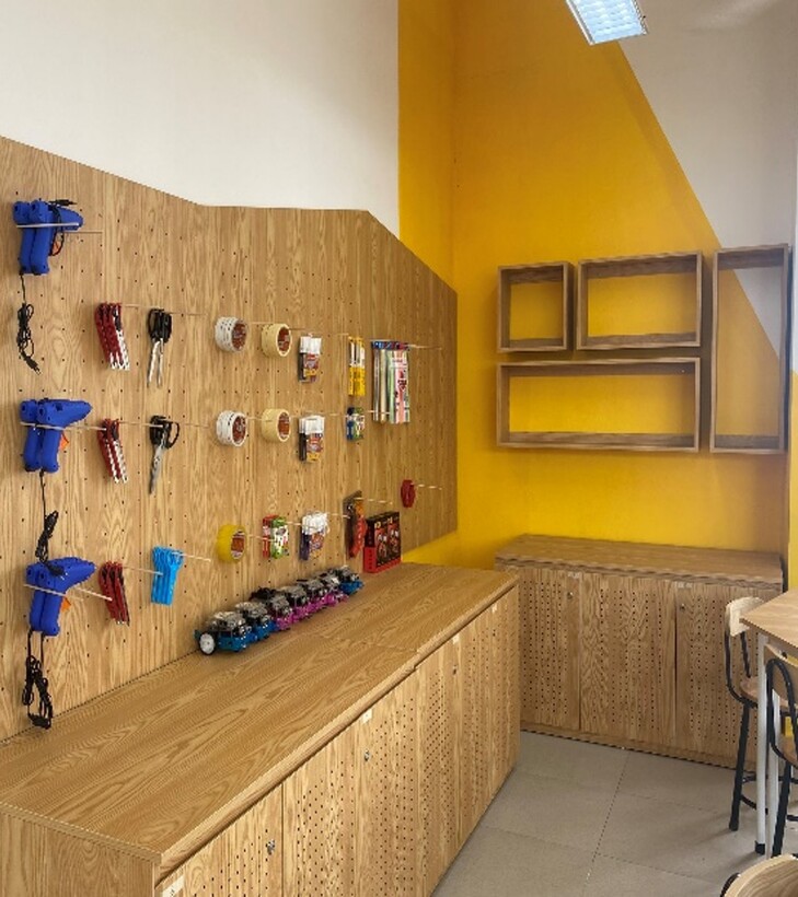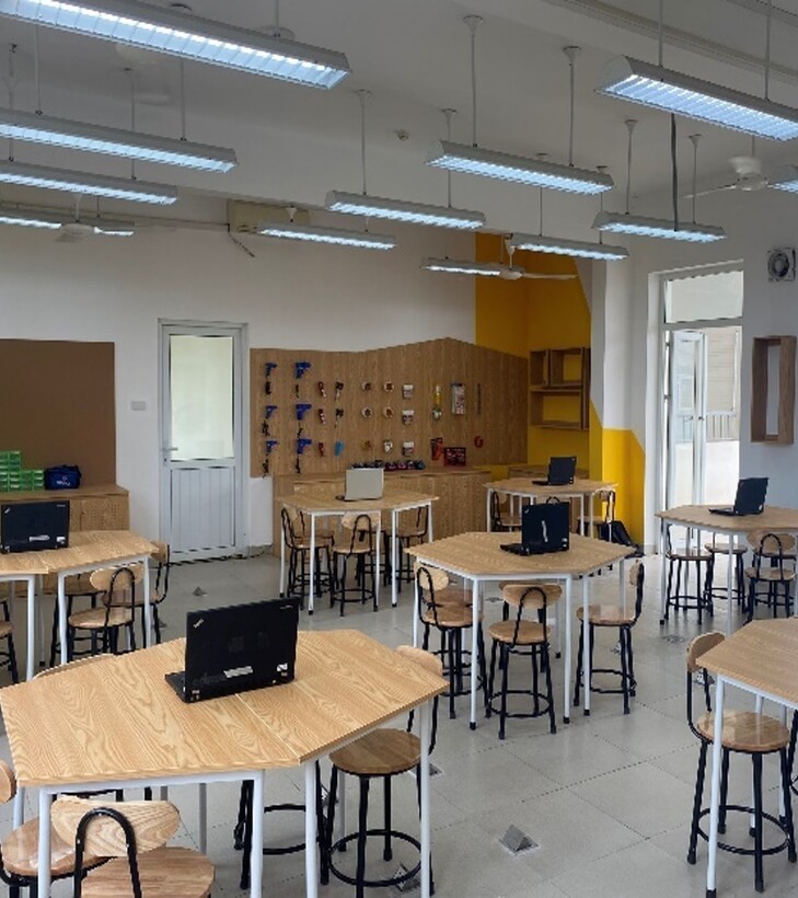Học tập tại không gian sáng chế được trang bị đầy đủ các thiết bị hiện đại như robot, máy in 3D, laptop…. giúp tạo hứng thú cho học sinh tiếp thu kiến thức và trải nghiệm, tự tay biến mọi ý tưởng thành các sản phẩm cụ thể.