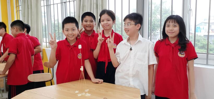 Học sinh lớp 6 trải nghiệm thử thách xây tháp bằng sợi mì