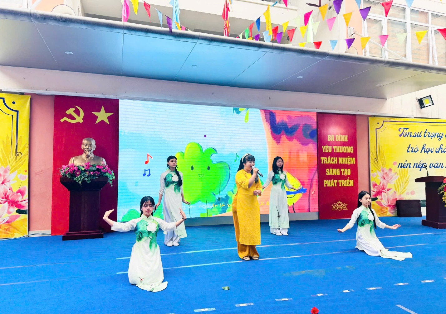 Mở đầu buổi lễ là tiết mục văn nghệ vô cùng hấp dẫn đến từ cô Thúy Hạnh và các em học sinh trong câu lạc bộ văn nghệ của nhà trường.