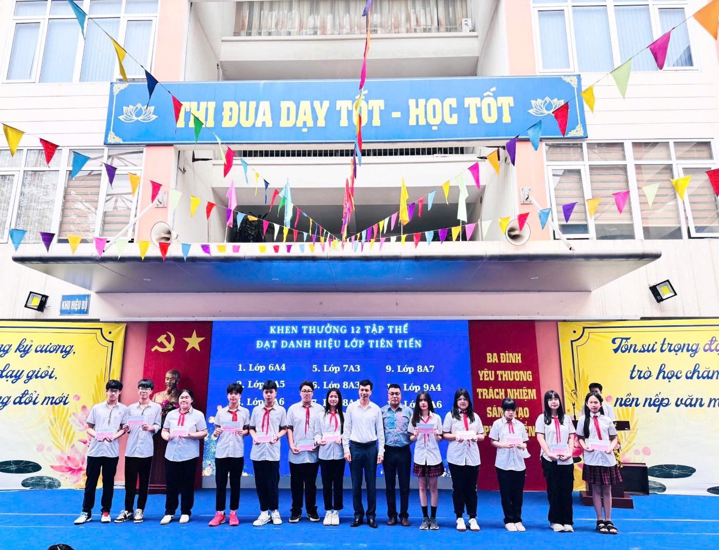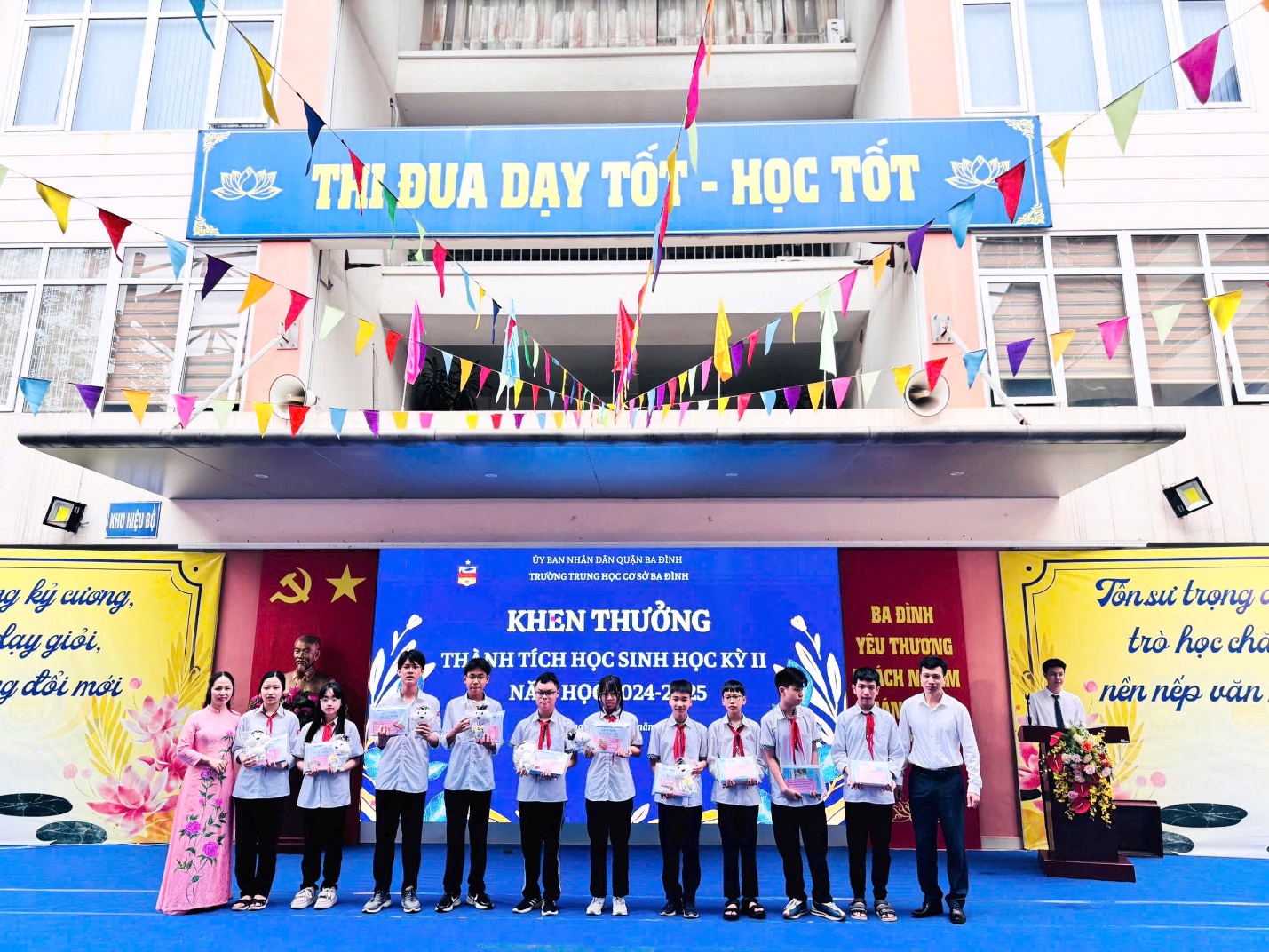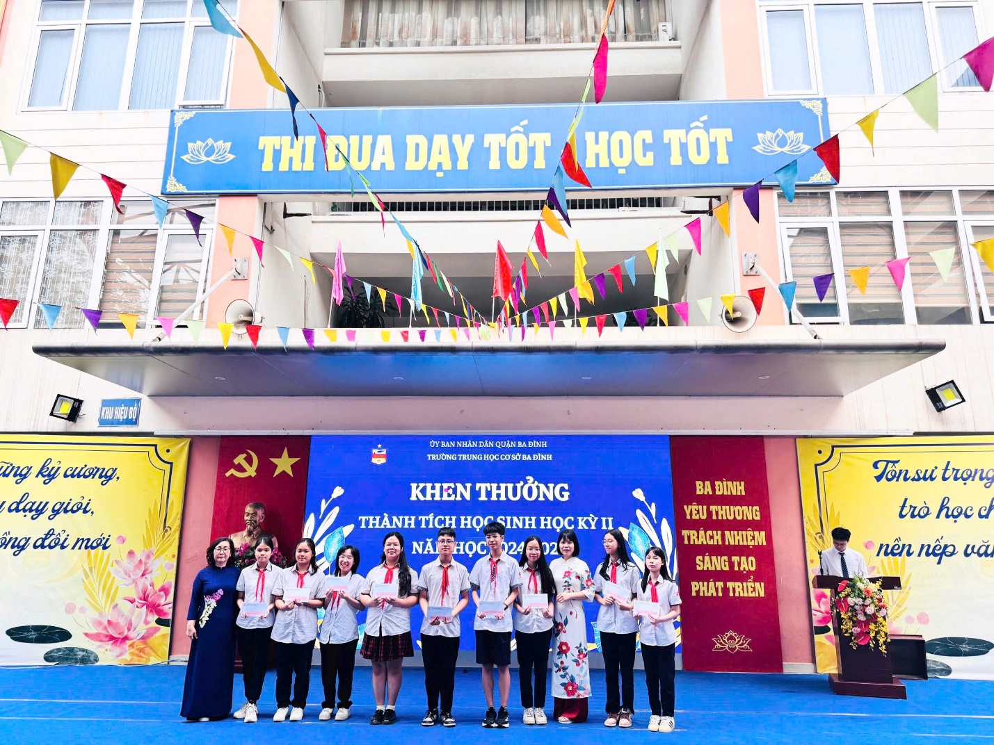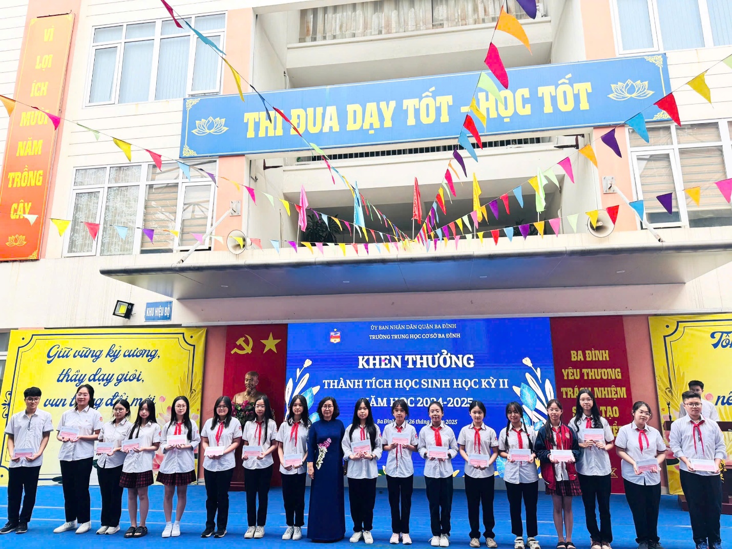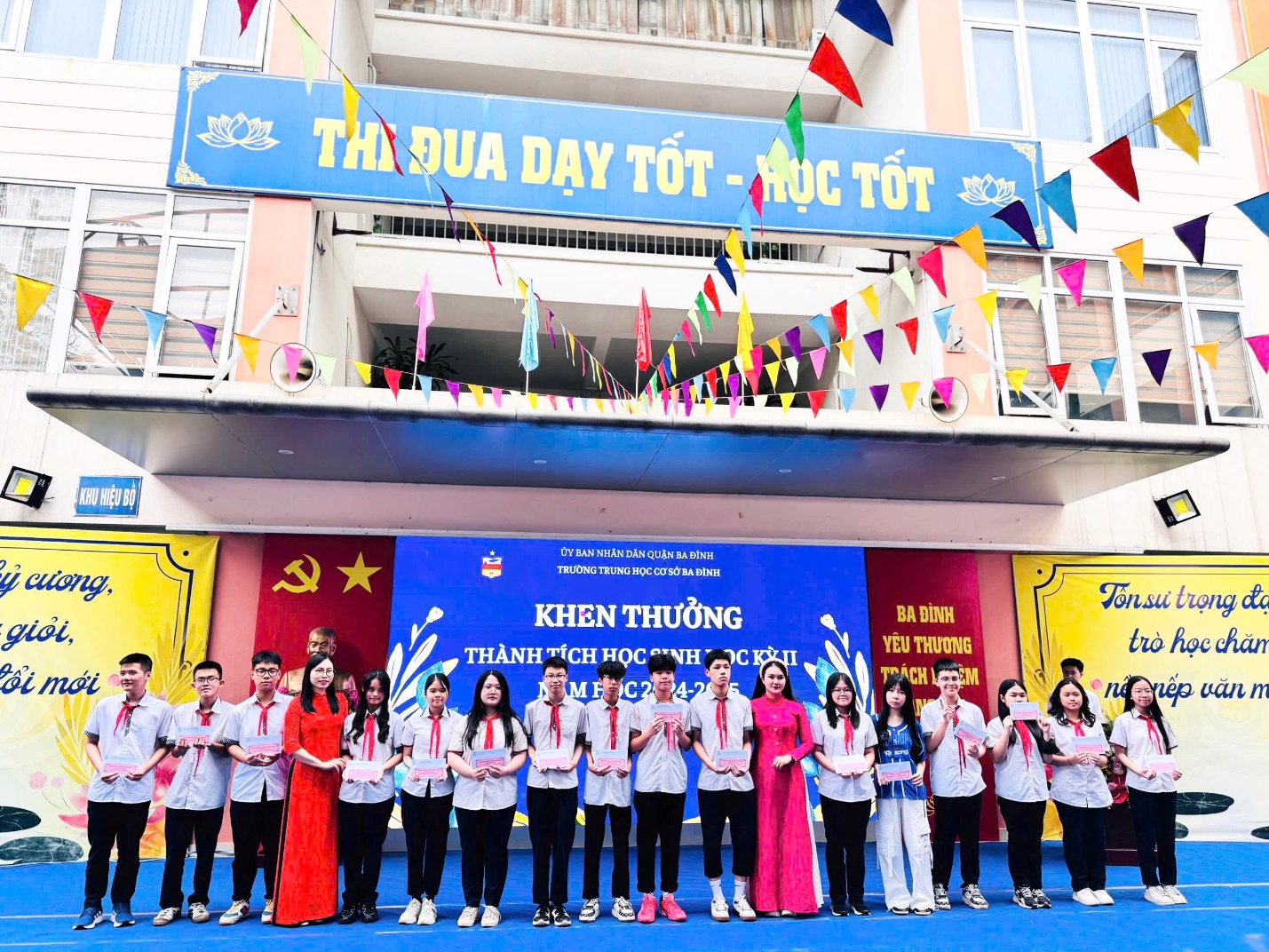 Một năm học nhiều thách thức nhưng cũng là cơ hội để mỗi học sinh trường THCS Ba Đình thể hiện bản thân với sự nỗ lực không ngừng. Từng dấu chân trên chặng đường 2024-2025 đều xứng đáng được ghi nhận. Đặc biệt, trong lễ tổng kết, nhà trường đã vinh danh 118 học sinh đạt thành tích xuất sắc trong các kì thi cấp Quốc gia, Thành phố, cấp Quận và cấp trường. Bên cạnh đó, nhà trường cũng trao thưởng cho 84 học sinh các khối 6, 7, 8, 9 đạt thành tích xuất sắc tiêu biểu trong năm học vừa qua và 17 tập thể lớp đạt danh hiệu lớp xuất sắc, 12 tập thể lớp đạt danh hiệu lớp tiên tiến, 6 tập thể lớp đạt danh hiệu lớp khá.