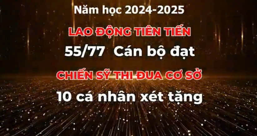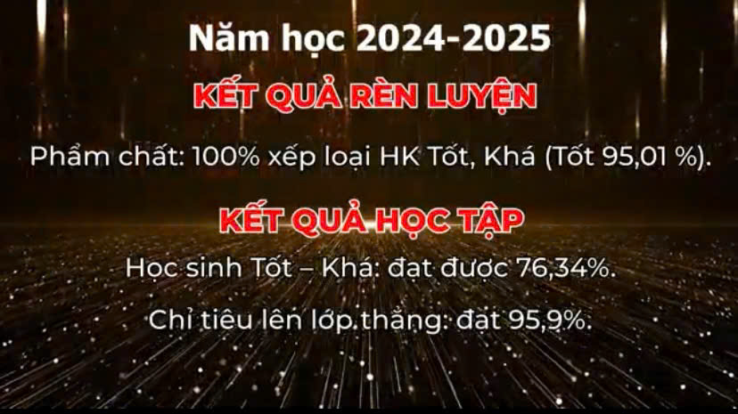 Tiếp theo chương trình, cô giáo Đặng Thị Ngọc Hường - Bí thư Chi bộ, Hiệu trưởng nhà trường đã lên báo cáo tổng kết năm học. Trong bài phát biểu của mình, cô đã nhấn mạnh những thành tích mà tập thể giáo viên, học sinh nhà trường đạt được trong năm học qua. Đó cũng chính là những kết quả ghi nhận sự phấn đấu nỗ lực của tất cả các con học sinh và sự tâm huyết, nhiệt tình cống hiến của các thầy cô giáo.