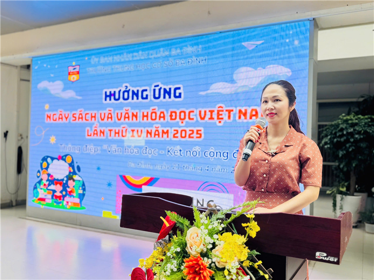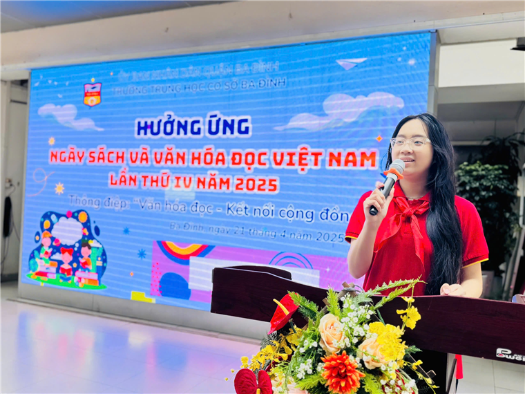 Hưởng ứng chủ đề “Cùng sách bước vào kỷ nguyên vươn mình của dân tộc”, “Văn hóa đọc - Kết nối cộng đồng”, “Đọc sách - làm giàu tri thức, nuôi dưỡng khát vọng, thúc đẩy đổi mới, sáng tạo” của Ngày sách và Văn hóa đọc Việt Nam năm 2025 được Bộ Văn hóa, Thể thao và Du lịch phát động, đồng thời hướng tới đại lễ kỷ niệm 50 năm Ngày Giải phóng miền Nam, thống nhất đất nước, Thư viện và Ban phụ trách Đội trường THCS Ba Đình cũng phát triển động, triển khai nhiều hoạt động nổi bật tạo nên sức hút của Ngày Sách và Văn hoá đọc năm 2025.