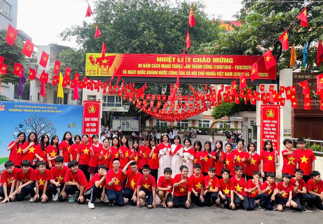 Với tinh thần trách nhiệm cao cùng lòng tự hào dân tộc, đội ngũ cán bộ, giáo viên, nhân viên trường THCS Ba Đình đã tham gia nhiều hoạt động tích cực, đóng góp công sức nhỏ bé của mình vào các hoạt động nhân kỷ niệm 80 năm cách mạng tháng Tám thành công (19/8/1945 - 19/8/2025) và Quốc khánh nước Cộng hoà xã hội chủ nghĩa Việt Nam (02/9/1945 - 02/9/2025).
