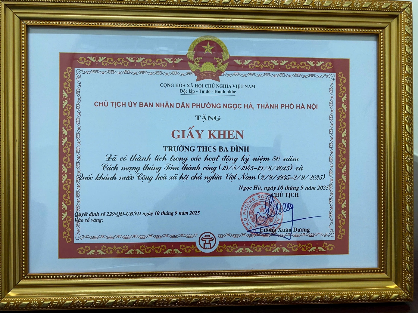 Giấy khen của Chủ tịch UBND phường Ngọc Hà là sự ghi nhận xứng đáng cho những nỗ lực không ngừng nghỉ của tập thể cán bộ, giáo viên và học sinh trường THCS Ba Đình. Đây không chỉ là niềm vinh dự mà còn là động lực để nhà trường tiếp tục phát huy truyền thống, đổi mới sáng tạo trong công tác giáo dục và xây dựng môi trường học đường gắn kết với cộng đồng.