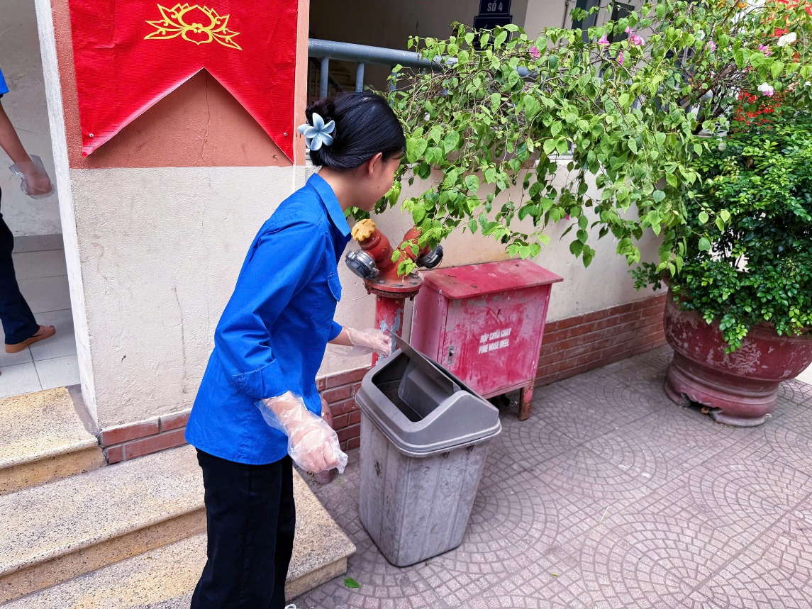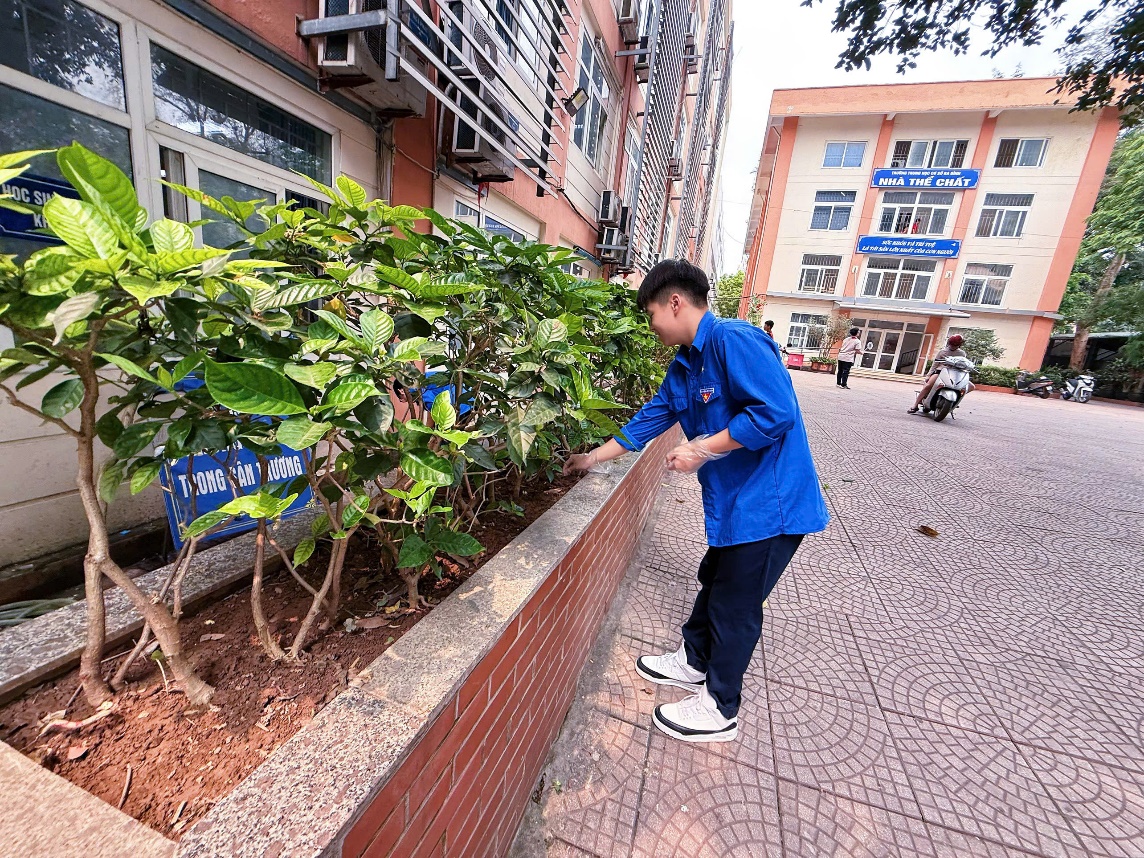 Trong suốt buổi sáng, dưới cái nắng đầu hè, các bạn đoàn viên đã cùng nhau quét dọn sân trường, chăm sóc bồn hoa và chỉnh trang các khu vực sinh hoạt chung. Khi cùng nhau làm việc, những câu chuyện chia sẻ và sự phối hợp nhịp nhàng đã giúp các bạn thêm gắn kết, tạo nên một tập thể vững mạnh và đầy nhiệt huyết. Những việc làm tuy nhỏ bé như nhặt một mẩu rác hay nhổ một khóm cỏ nhưng lại mang lại hiệu quả to lớn, giúp môi trường học tập trở nên xanh - sạch - đẹp hơn, sẵn sàng cho những ngày kỷ niệm trọng đại.