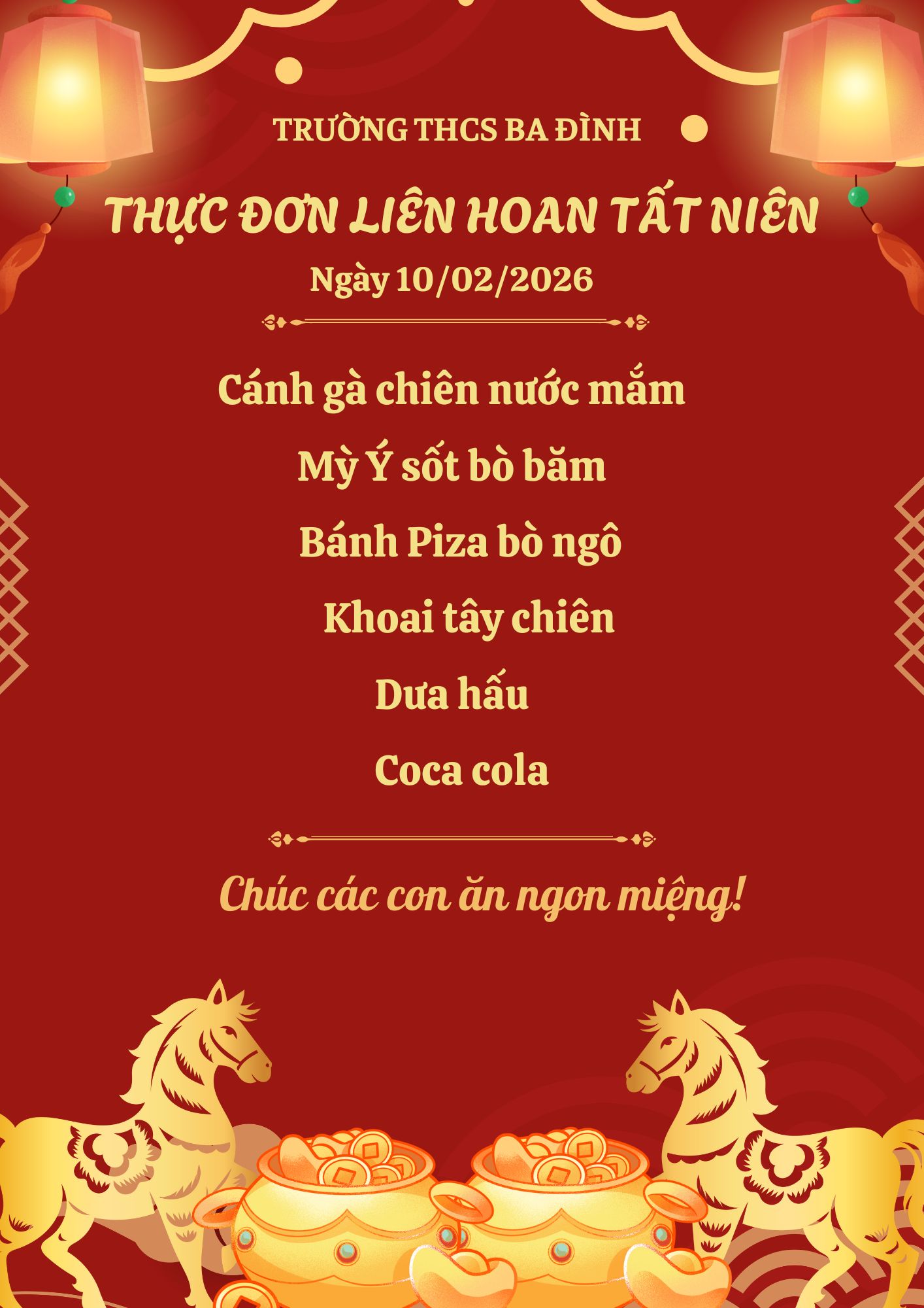Trường THCS Ba Đình thông báo lịch nghỉ Tết nguyên đán năm 2026