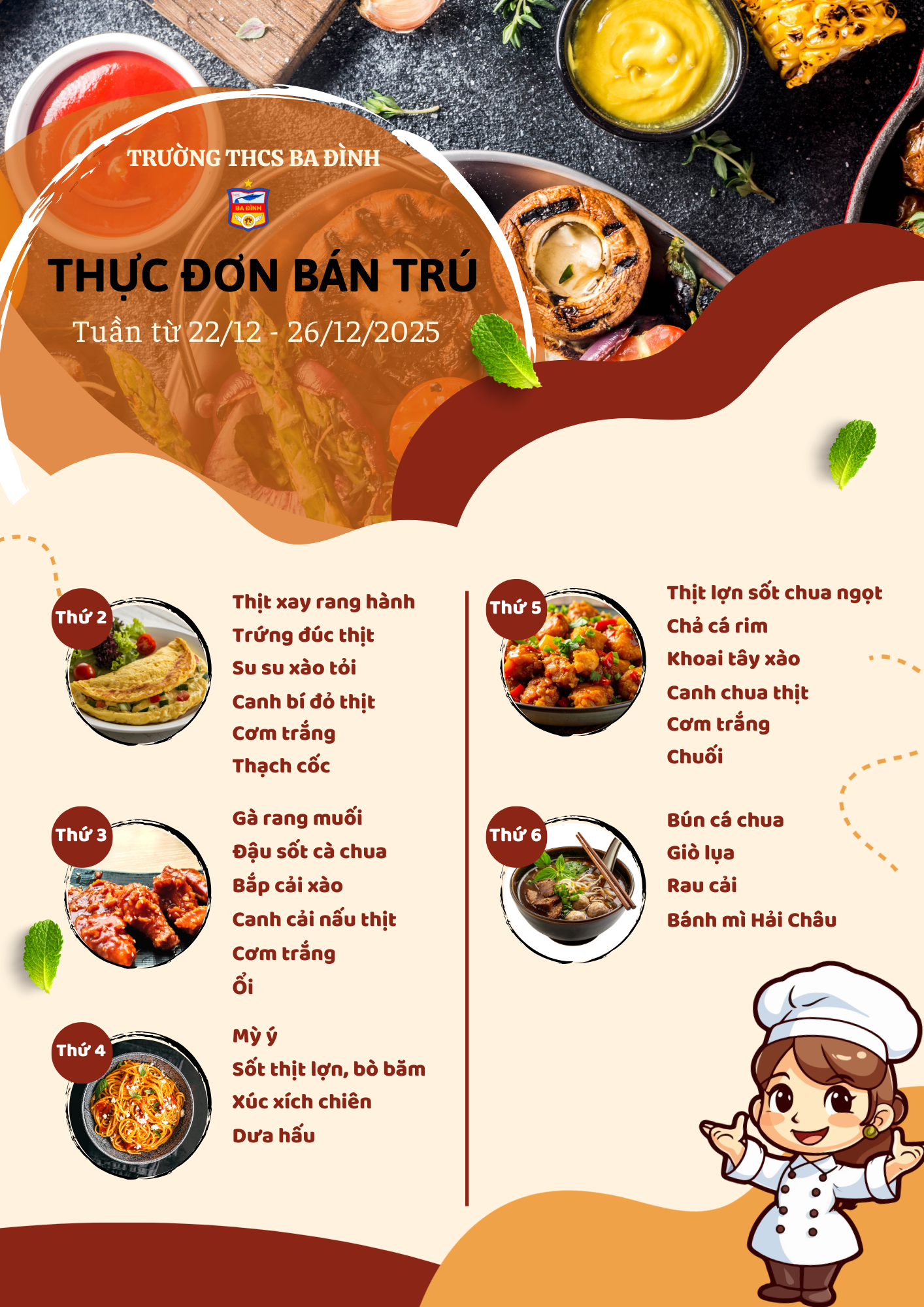 Thực đơn bán trú tuần từ ngày 22/12 đến hết ngày 26/12/2025