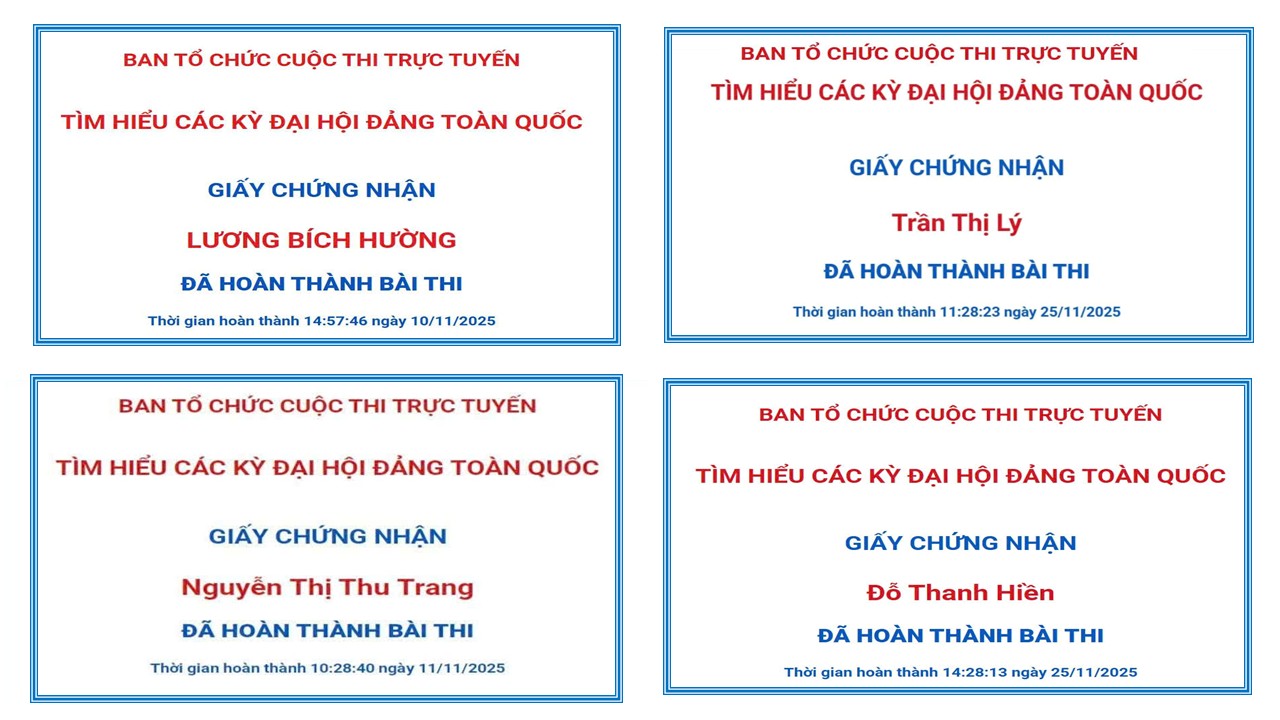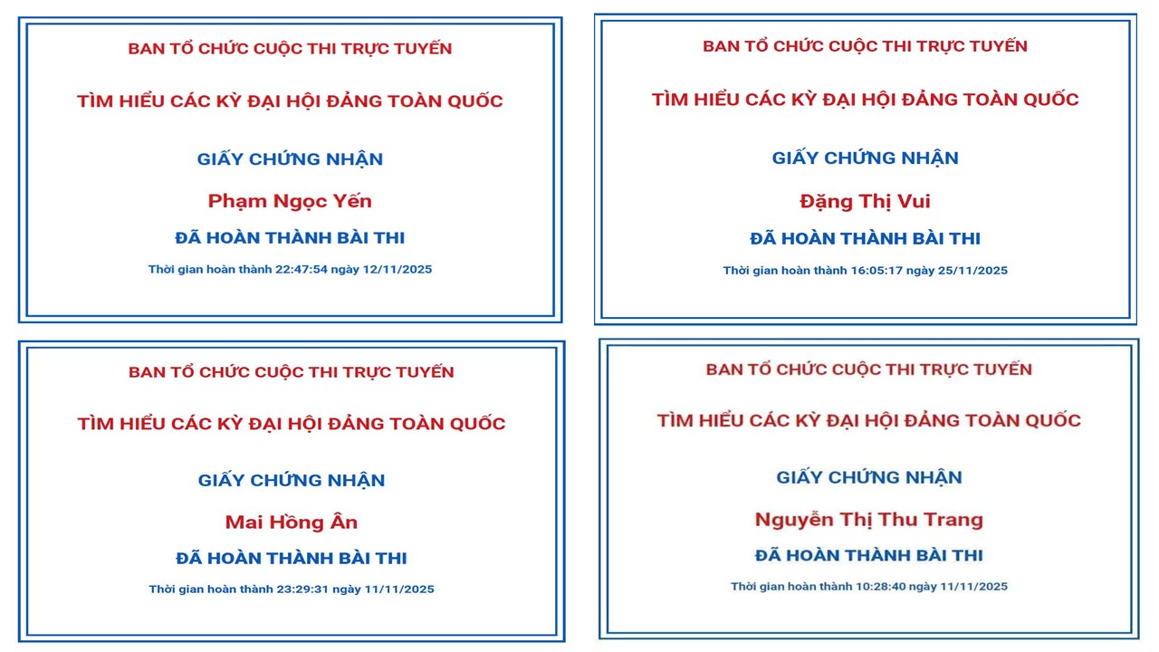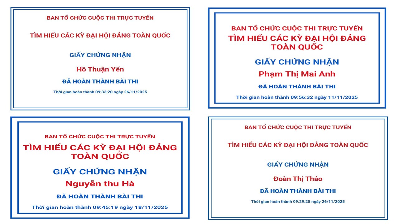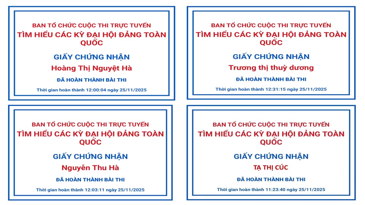 Tính đến ngày 28 tháng 11 năm 2025, chỉ còn vài ngày nữa là kết thúc vòng thi thứ 3, Chi bộ trường THCS Ba Đình đã có tổng số 37/37 đảng viên và 25 quần chúng tham gia dự thi. Nhiều đồng chí hoàn thành bài thi với chất lượng cao, thể hiện tinh thần nghiêm túc, trách nhiệm, thái độ học tập tích cực và sự hiểu biết sâu sắc về các kỳ Đại hội Đảng. Đây là minh chứng rõ nét cho tinh thần đoàn kết, quyết tâm và ý thức rèn luyện, tự học của mỗi đảng viên trong thời đại số.