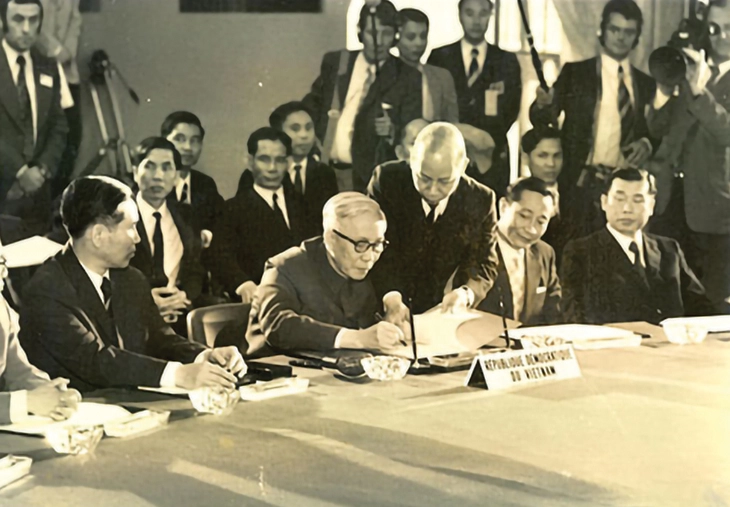 Cố vấn đặc biệt Lê Đức Thọ đại diện Việt Nam Dân chủ Cộng hòa tại Lễ ký tắt Hiệp định Paris ngày 23/1/1973