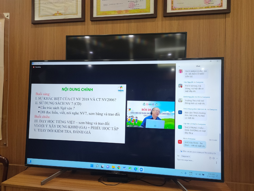 ​Thực hiện chương trình giáo dục phổ thông năm 2018, ngày 14/7/2022, giáo viên tổ Xã hội trường THCS Ba Đình tham gia hội nghị trực tuyến tập huấn sách giáo khoa Ngữ văn 7 bộ sách Cánh Diều.