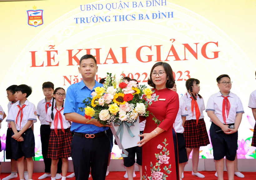 Tại Lễ khai giảng, đồng chí Lê Ngọc Minh - Đảng Uỷ viên, Phó Chủ tịch UBND phường Ngọc Hà đã đọc thư của Chủ tịch nước Nguyễn Xuân Phúc gửi ngành Giáo dục nhân dịp khai giảng năm học mới 2022 - 2023 và tặng hoa chúc mừng nhà trường.