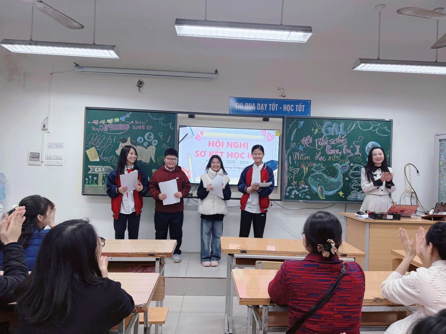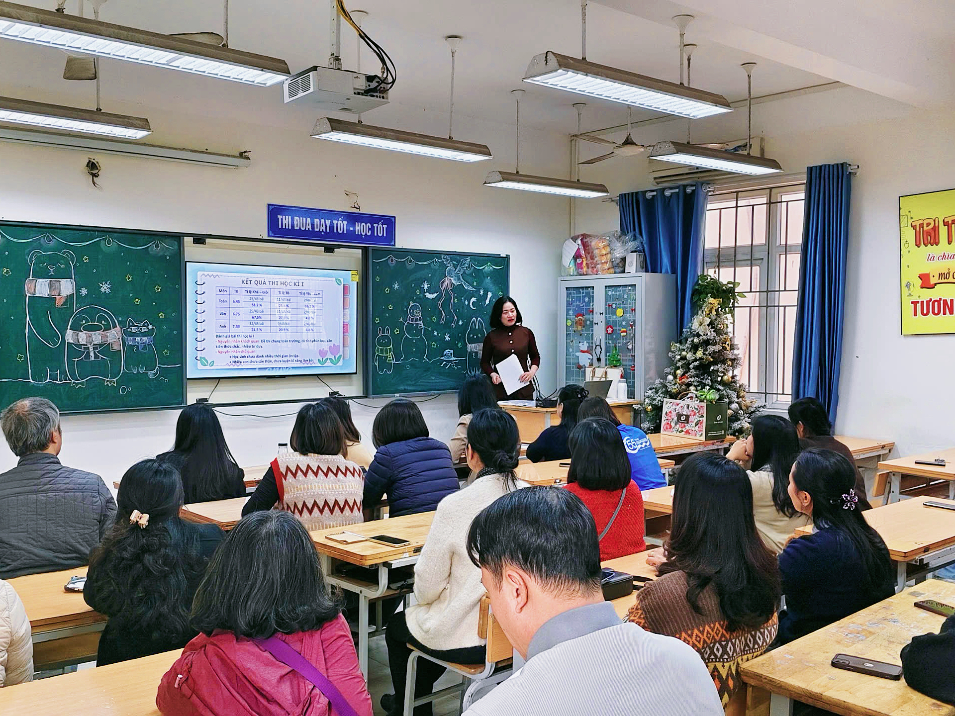 Giáo viên tóm tắt kết quả chung thành tích bật của nhà trường trong học kì I