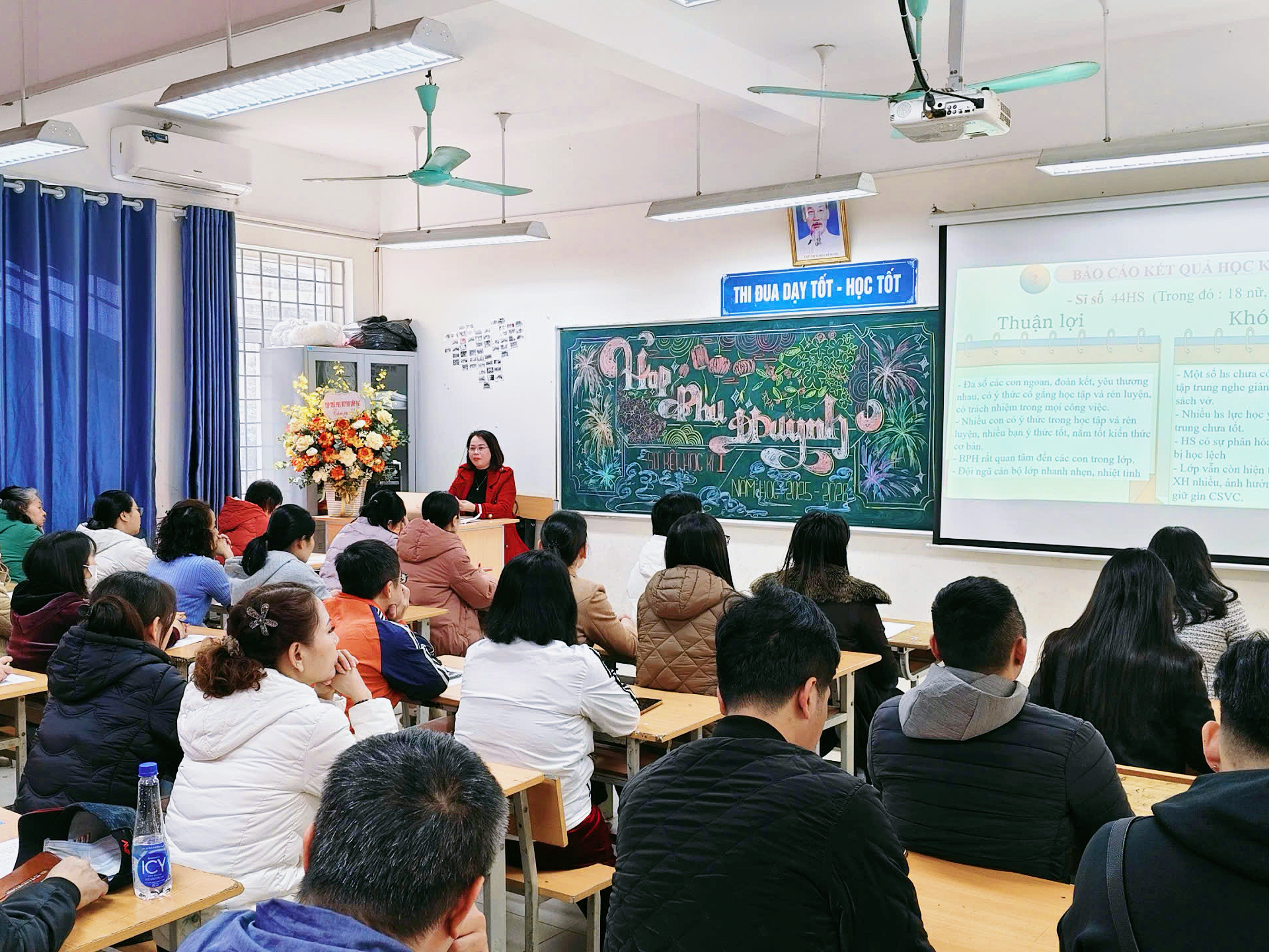 Các bậc phụ huynh và các em học sinh tham dự Hội nghị sơ kết học kì I tại lớp