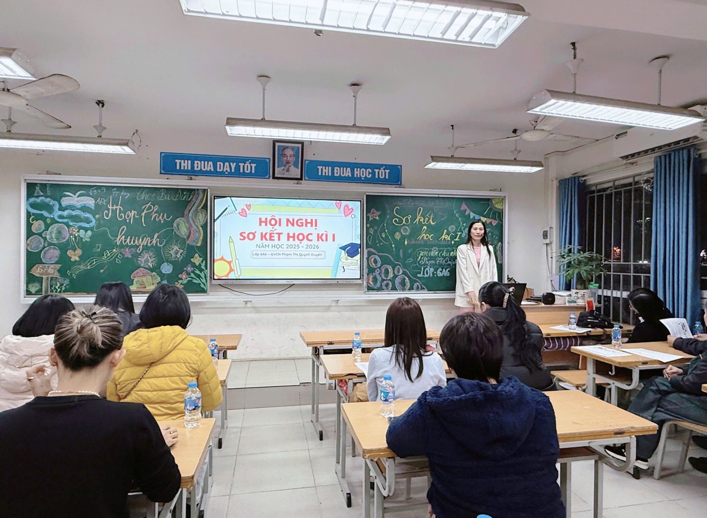 Chiều ngày 09/01/2026, Hội nghị Cha mẹ học sinh các khối lớp 6, 7, 8 được tổ chức theo kế hoạch chung của nhà trường. Tại các lớp, giáo viên chủ nhiệm đã thông tin khái quát về tình hình chung của nhà trường, các hoạt động giáo dục nổi bật trong học kì I và những kết quả đáng ghi nhận mà thầy và trò đã đạt được. Trên cơ sở đó, giáo viên chủ nhiệm đi sâu phân tích tình hình học tập, rèn luyện của từng lớp, từng học sinh, giúp cha mẹ học sinh có cái nhìn đầy đủ và sát thực về quá trình học tập của con em mình.