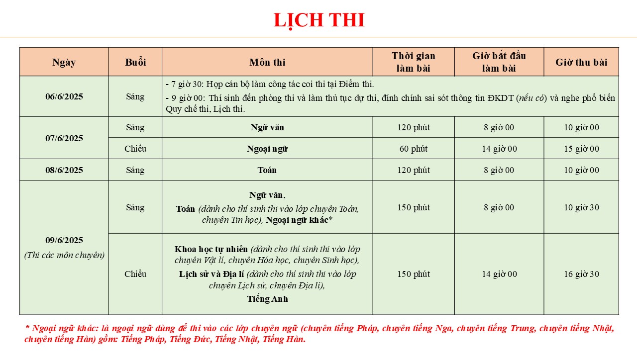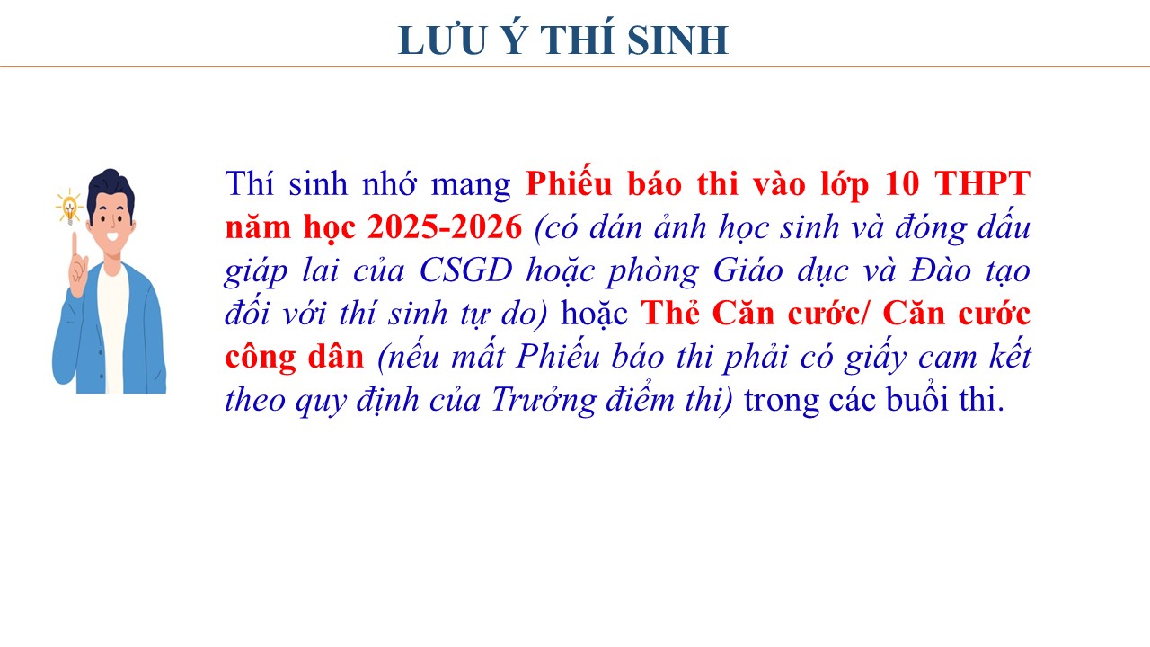 Một số lưu ý đối với thí sinh trong kỳ thi tuyển sinh vào lớp 10 THPT năm học 2025-2026