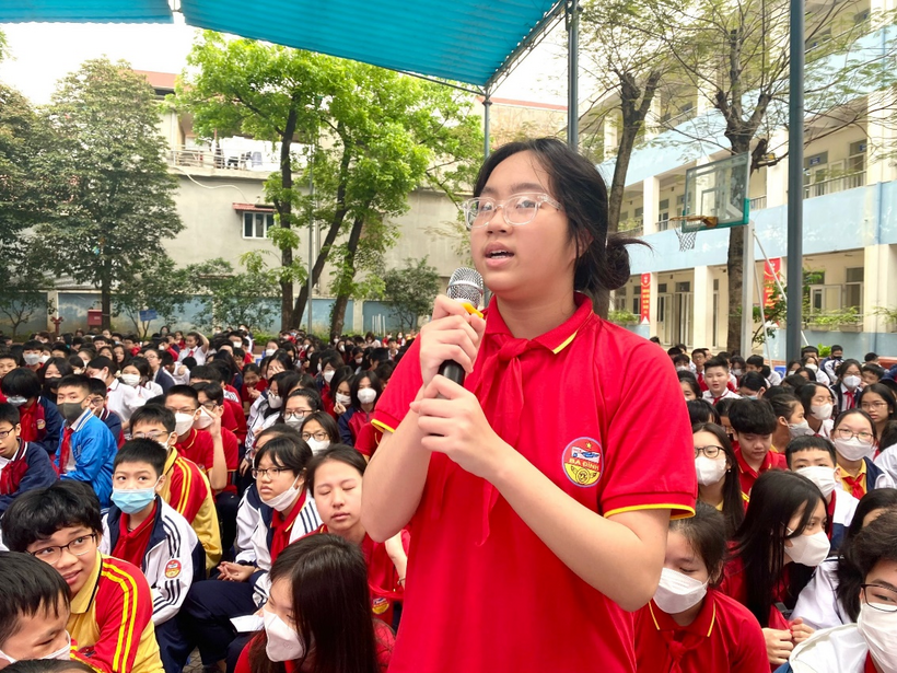 Em Nguyễn Ngọc Khánh - Lớp 7A5 đại diện cho học sinh toàn trường