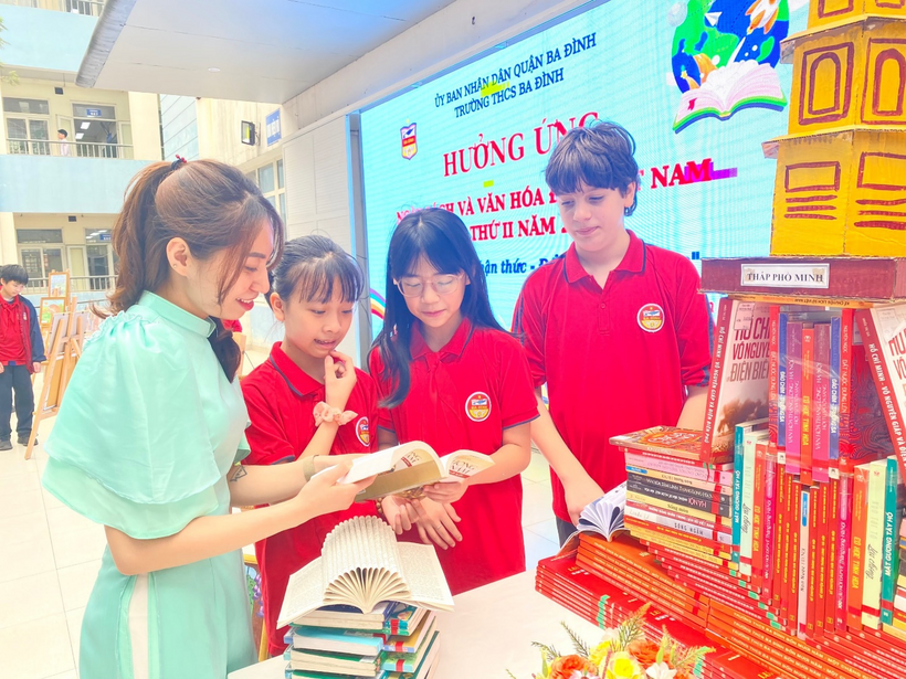 Đọc sách là con đường nhanh nhất để khám phá tri thức. Trường THCS Ba Đình muốn gửi tới các thầy cô giáo và các em học sinh thông điệp: Mỗi cuốn sách là một bức tranh kỳ diệu về cuộc sống. Sách không đơn thuần chỉ là những trang giấy mà trong đó còn chứa đựng một thế giới mà con người luôn khao khát được khám phá. Hãy cầm sách lên và đọc, ta sẽ thấy thế giới mở ra trước mắt ta!