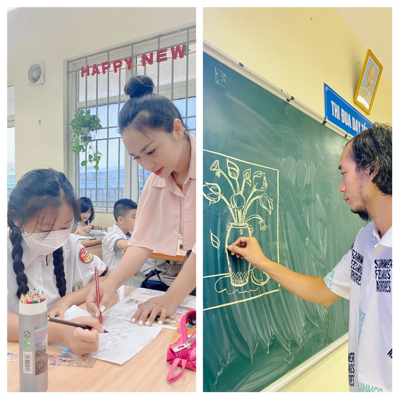 Thầy cô hướng dẫn học sinh tỉ mỉ khi học CLB Mĩ thuật