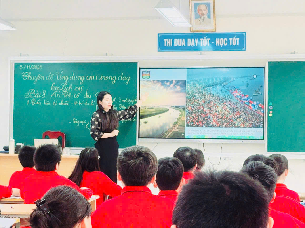 Cô giáo Phương Thảo đã khéo léo lồng ghép kiến thức về Ấn Độ cổ đại với thực tế xã hội Ấn Độ ngày nay, đồng thời liên hệ sâu sắc đến hành trình tìm đường cứu nước của Chủ tịch Hồ Chí Minh. Nhờ vậy, tiết học trở nên sinh động, gần gũi, khơi gợi niềm yêu thích học tập môn Lịch sử ở học sinh.
