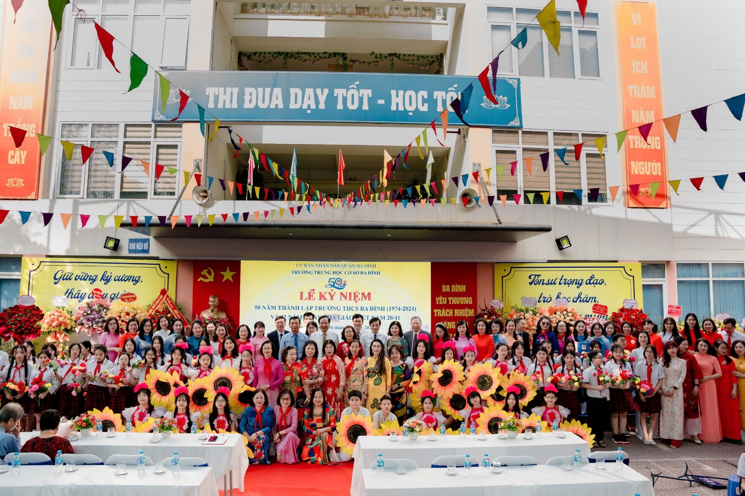 Năm học 2024 - 2025 đã trở thành một dấu ấn đặc biệt trong hành trình xây dựng và phát triển của Trường THCS Ba Đình. Điểm nhấn rực rỡ nhất chính là Lễ kỷ niệm 50 năm thành lập trường (1974 - 2024) - sự kiện không chỉ gợi lại truyền thống hiếu học và thành tựu vẻ vang, mà còn là nơi hội ngộ đầy xúc động của nhiều thế hệ thầy trò dưới mái nhà chung Ba Đình. Trong không khí tri ân và tự hào ấy, ngọn lửa gắn kết, khát vọng cống hiến và tinh thần đổi mới đã được thắp sáng, tiếp thêm động lực cho chặng đường mới.