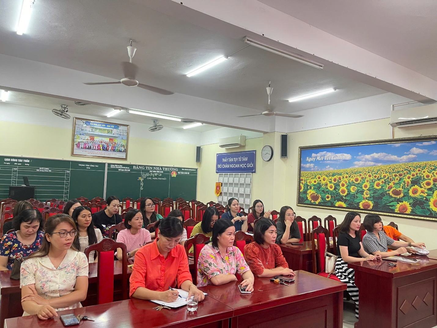 Tham dự buổi họp có cô giáo Đặng Thị Ngọc Hường - Bí thư Chi bộ, Hiệu trưởng nhà trường; thầy giáo Nguyễn Hữu Hiệp - Phó Bí thư Chi bộ, Phó Hiệu trưởng nhà trường; cô giáo Nguyễn Ngọc Dung - Ủy viên, Phó Hiệu trưởng nhà trường cùng các thầy cô trong Hội đồng tuyển sinh năm học 2025-2026.