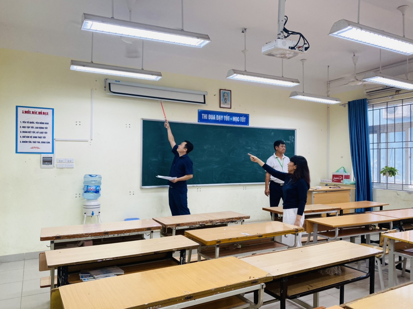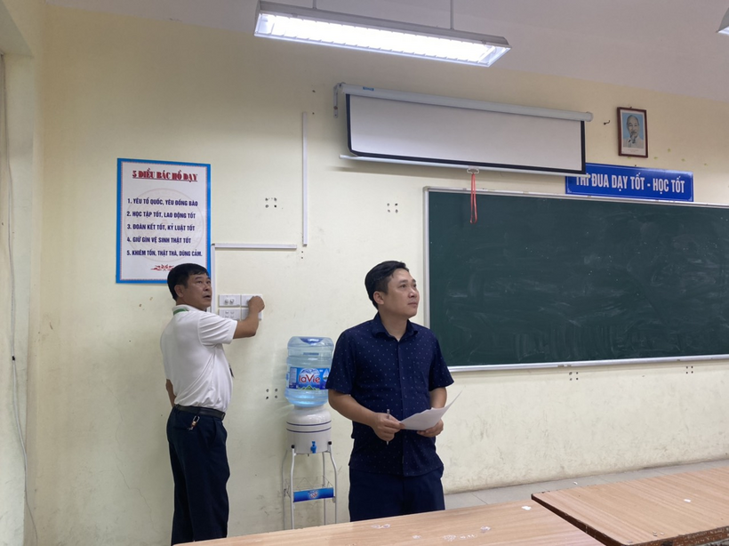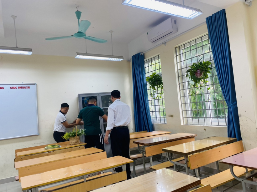 Tổ kiểm tra đang thực hiện công việc rà soát, kiểm tra trong các lớp học