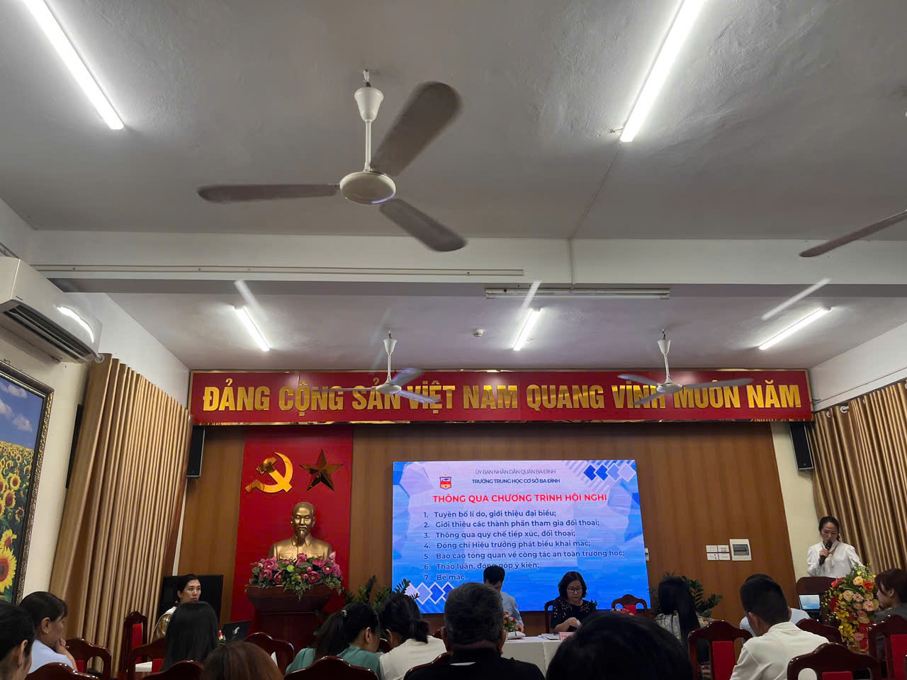 Trường THCS Ba Đình tổ chức thành công hội nghị đối thoại giữa Bí thư chi bộ, Hiệu trưởng nhà trường với cán bộ, giáo viên, nhân viên, phụ huynh học sinh với chủ đề “Tăng cường các giải pháp đảm bảo an ninh, an toàn trường học”