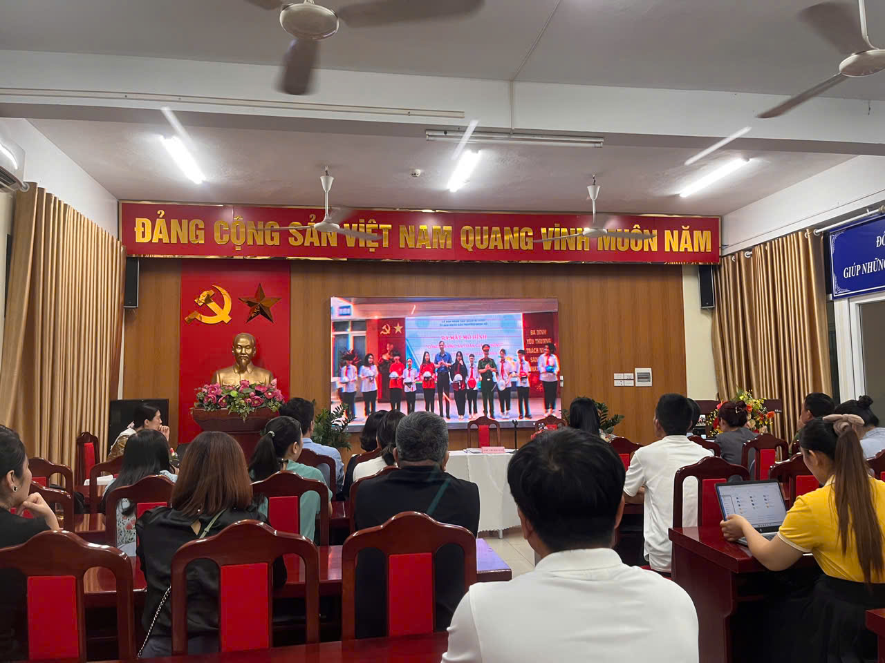 Hội nghị nghe báo cáo những việc đã làm trong công tác an ninh, an toàn của nhà trường qua video