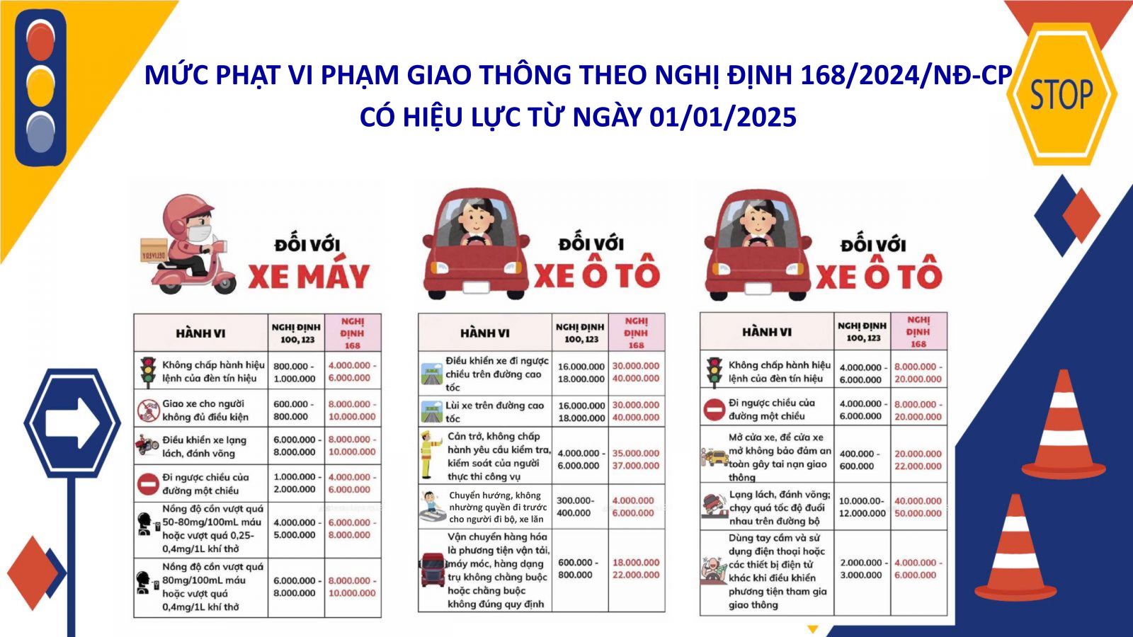 Trường THCS Ba Đình tuyên truyền tới toàn thể CB, GV, NV, CMHS và học sinh nhà trường Nghị định số 168/2024/NĐ-CP ngày 26/12/2024 của Chính phủ quy định xử phạt vi phạm hành chính về trật tự, an toàn giao thông trong lĩnh vực giao thông đường bộ; trừ điểm, phục hồi điểm giấy phép lái xe. Nghị định đã chính thức có hiệu lực từ ngày 01/01/2025, đánh dấu bước chuyển quan trọng trong việc tăng cường trật tự an toàn giao thông. Nghị định gồm 4 Chương, 55 Điều quy định xử phạt vi phạm hành chính về trật tự, an toàn giao thông trong lĩnh vực giao thông đường bộ; trừ điểm, phục hồi điểm giấy phép lái xe; trong đó có các điểm mới như: tăng mức phạt tiền, trừ điểm, phục hồi điểm giấy phép lái xe,...