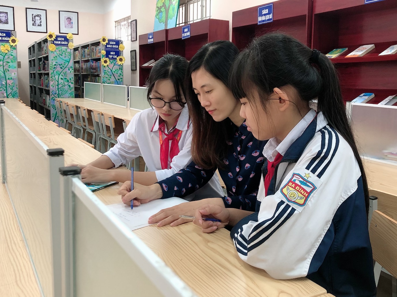 Cô Quỳnh Duyên hướng dẫn học sinh nghiên cứu khoa học