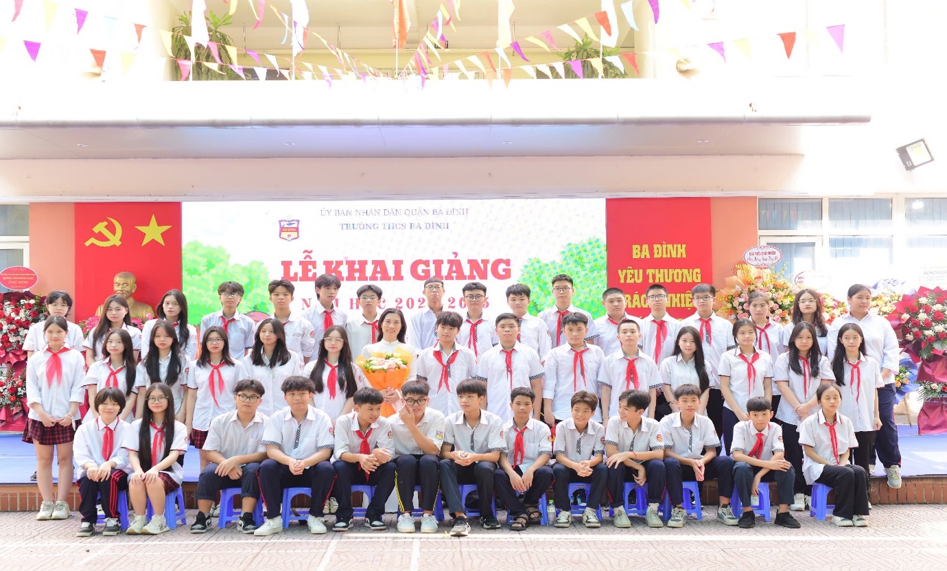 Cô giáo Quỳnh Duyên cùng học sinh lớp 9A3 tại Lễ khai giảng năm học 2024-2025