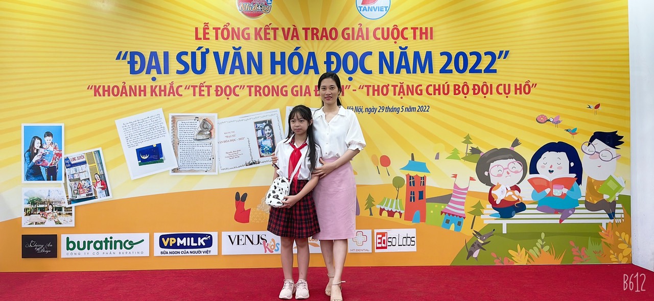 Cô Quỳnh Duyên cùng học sinh nhận giải Đại sứ văn hóa đọc