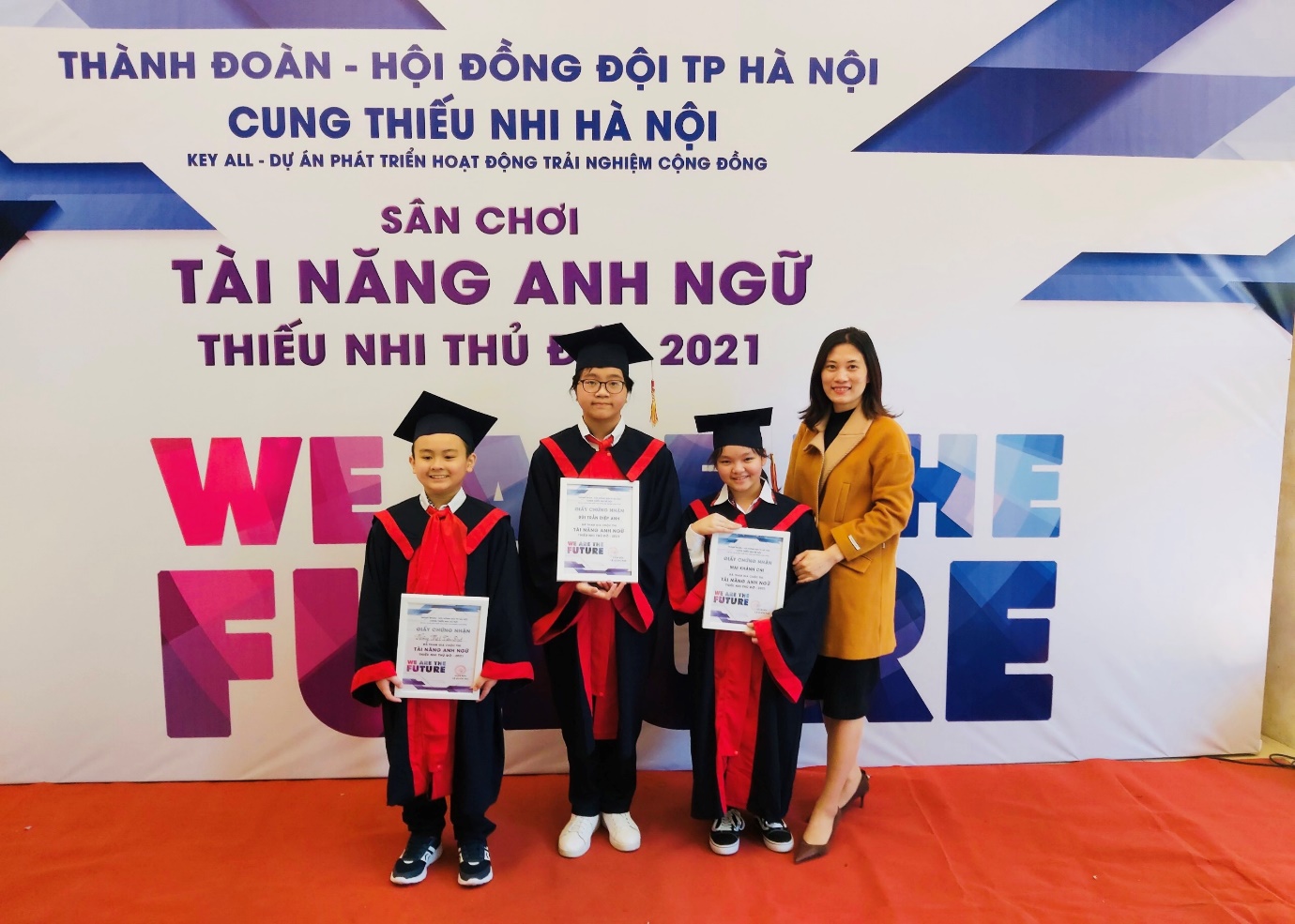 Cô Quỳnh Duyên cùng học sinh tham dự Cuộc thi Tài năng Anh ngữ Thủ đô