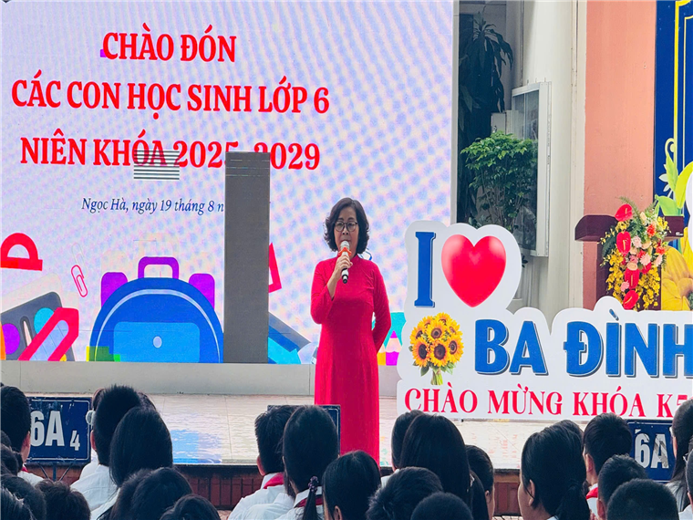 Tiếp đó, cô giáo Đặng Thị Ngọc Hường - Hiệu trưởng nhà trường đã có bài phát biểu đầy ý nghĩa, gửi lời chào đón nồng nhiệt tới các em học sinh khối 6 vừa chính thức trở thành thành viên mới của đại gia đình THCS Ba Đình.