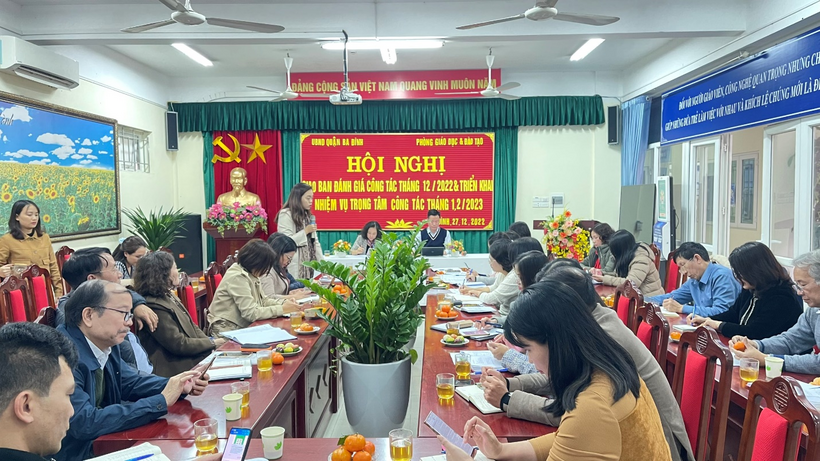 Hội nghị giao ban đánh giá công tháng tháng 12/2022 và triển khai nhiệm vụ trọng tâm công tác tháng 1, 2/2023 tại trường THCS Ba Đình đã diễn ra thành công tốt đẹp, tạo thuận lợi cho công tác triển khai, thực hiện nhiệm vụ của các trường THCS trên địa bàn quận trong tháng 1, 2/2023 và các tháng tiếp theo./.