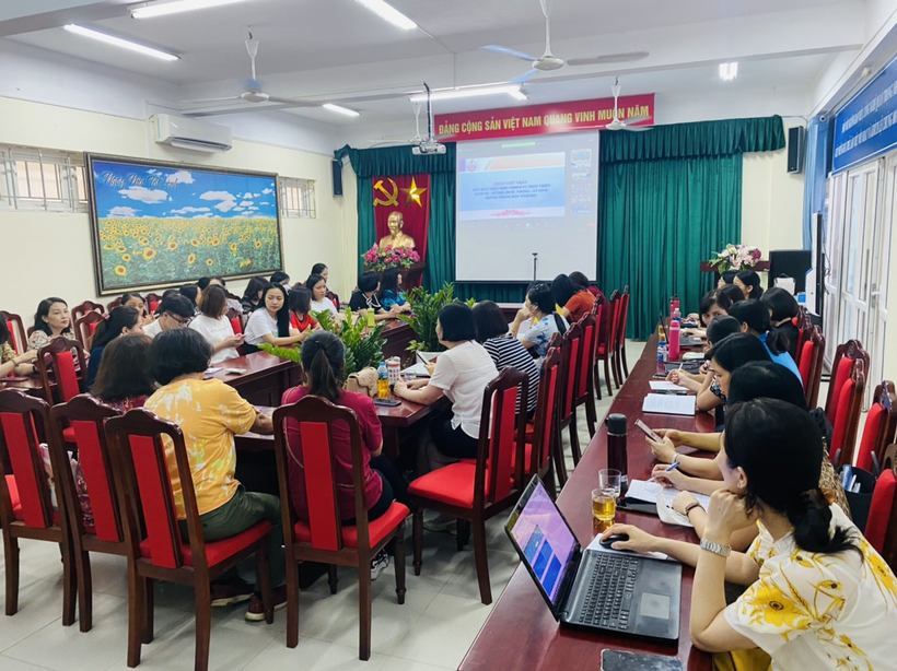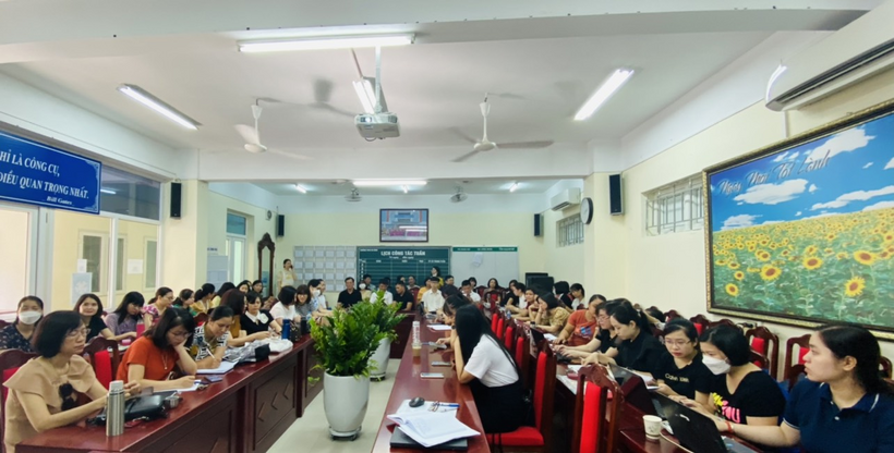 Lớp bồi dưỡng được tổ chức theo hình thức trực tiếp kết hợp trực tuyến từ điểm cầu hội trường tầng 2 trụ sở Quận ủy - HĐND - UBND quận Ba Đình tới điểm cầu các trường Mầm non, Tiểu học, THCS trên địa bàn quận.