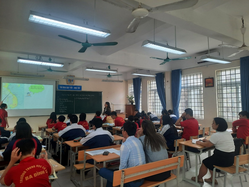 Các em học sinh cùng tiết học Địa lí với nhiều trải nghiệm thú vị
