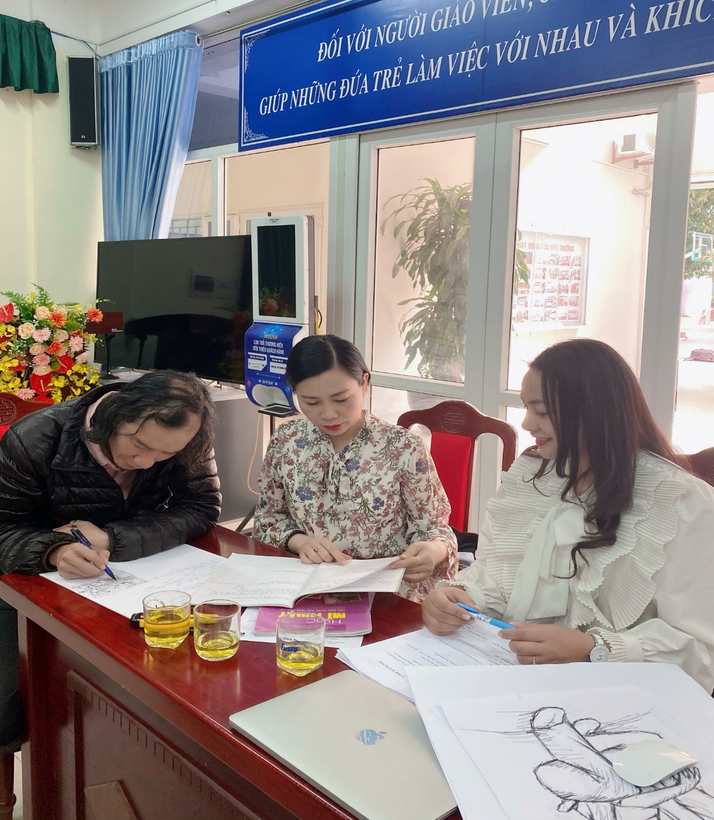 Giáo viên tích cực trao đổi chuyên môn cùng cộng tác viên dự giờ