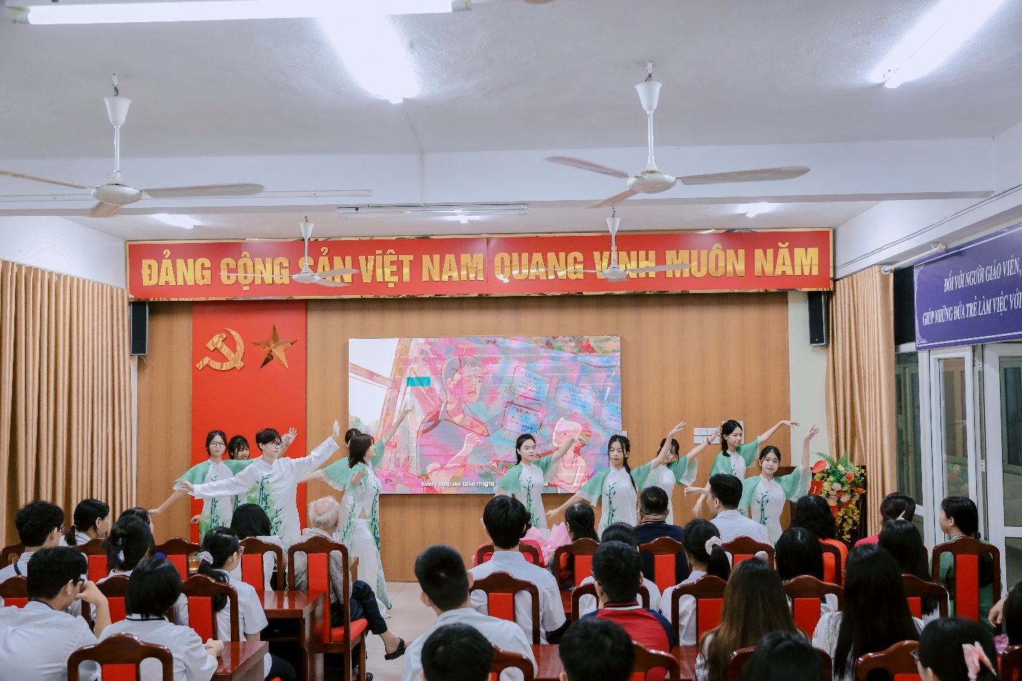 Mở đầu chương trình là tiết mục văn nghệ vô cùng hấp dẫn đến từ các em học sinh trong đội văn nghệ của nhà trường.