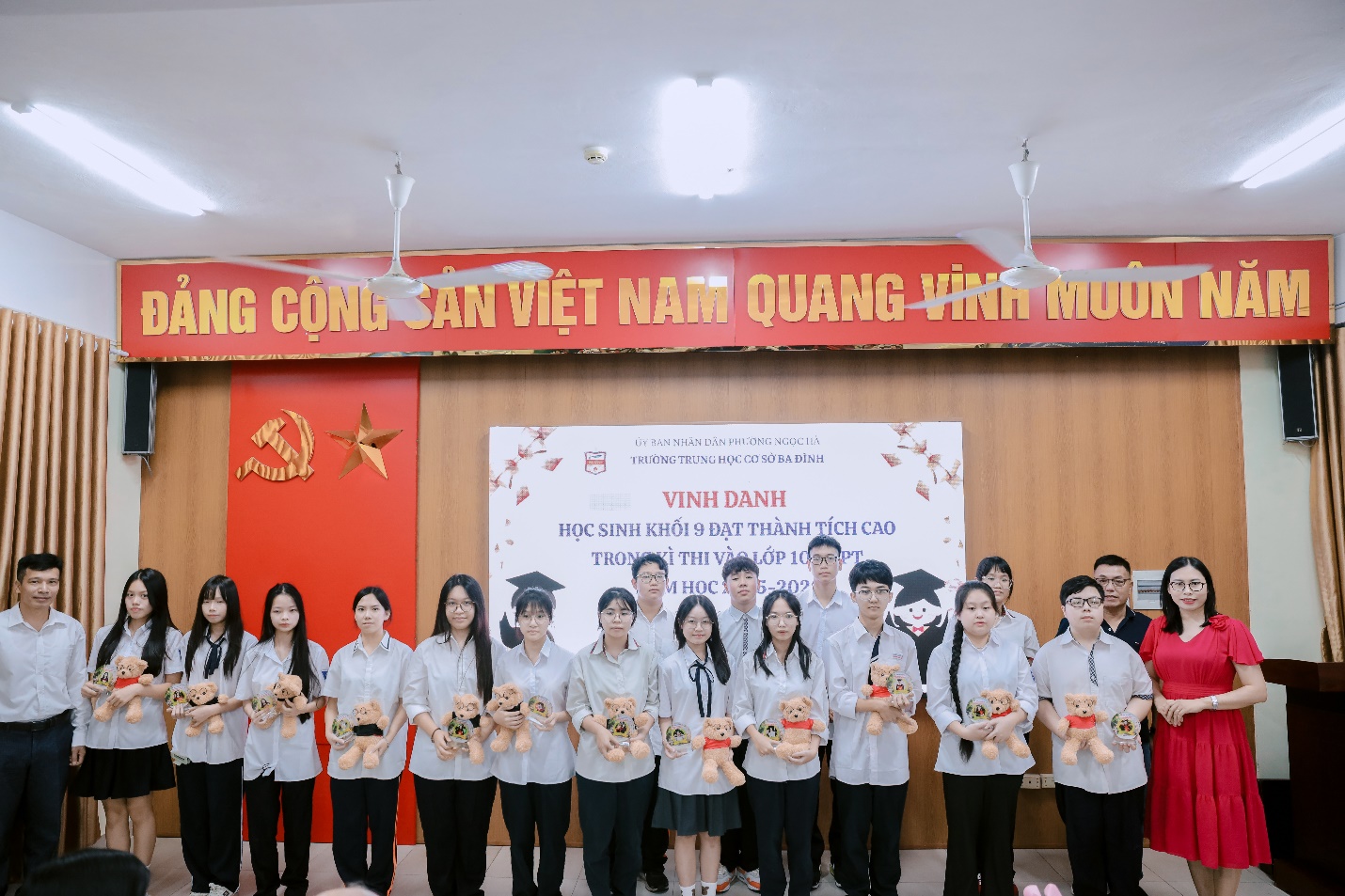 Trường THCS Ba Đình với truyền thống 51 năm xây dựng và phát triển, qua mỗi năm học, nhà trường lại ghi dấu ấn bởi những thành tích, đó là công sức, trái ngọt của thầy và trò nhà trường. Nhằm động viên, khích lệ và tuyên dương các em học sinh đạt điểm cao trong kỳ thi tuyển sinh lớp 10 THPT, sáng ngày 19/8/2025, trường THCS Ba Đình đã tổ chức Lễ vinh danh học sinh khối 9 đạt thành tích cao trong kì thi vào lớp 10 THPT năm học 2025 - 2026.