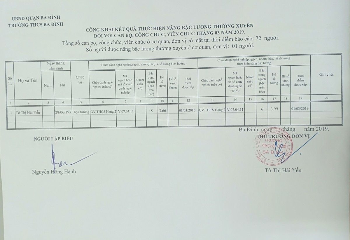 Công khai kết quả thực hiện nâng bậc lương thường xuyên đối với CB, CC, VC tháng 03/2019