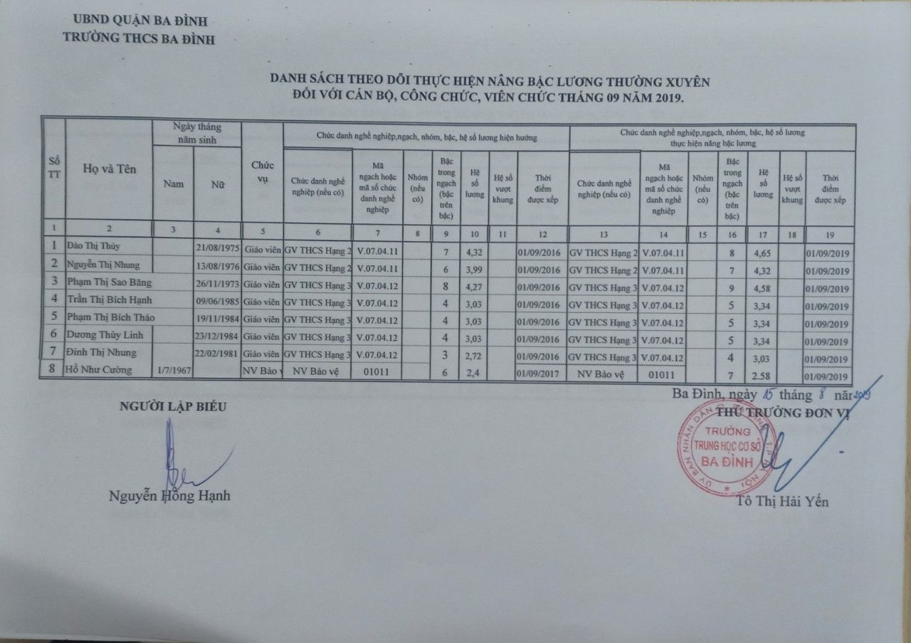 Công khai kết quả thực hiện nâng bậc lương thường xuyên đối với CB, CC, VC tháng 09/2019