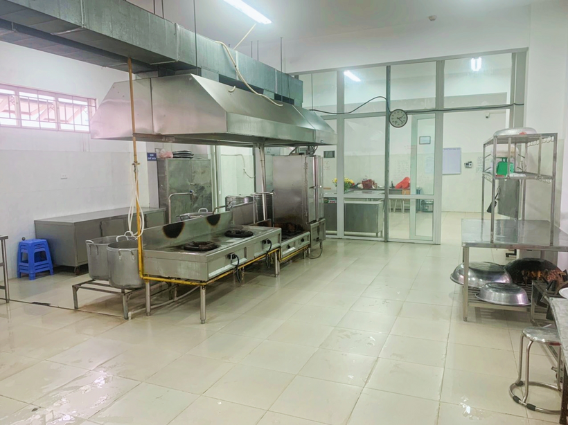Không gian của khu vực bếp, nhà ăn bán trú của học sinh