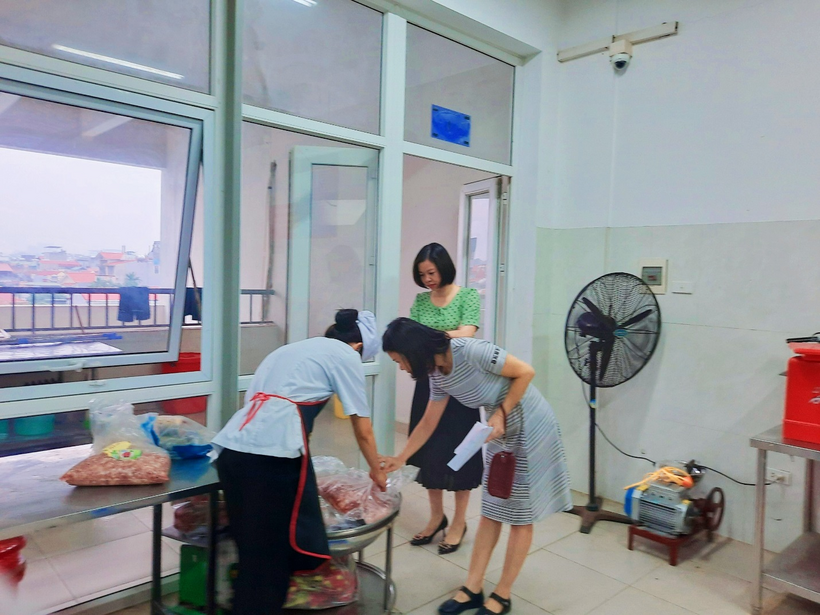 Để có được những suất ăn bảo đảm an toàn cho học sinh, nhà trường đã chỉ đạo công ty suất ăn Hoa Sữa phải thực hiện qua nhiều công đoạn từ chọn thực phẩm, sơ chế thức ăn... đến chế biến các món ăn hợp khẩu vị, lứa tuổi. Trong đó, công tác kiểm tra giám sát người giao thực phẩm cũng được nhà trường chú trọng. Hàng ngày, đại diện giáo viên, nhân viên nhà trường cùng đại diện PHHS các lớp và nhân viên bếp tiến hành kiểm tra công tác giao, nhận thực phẩm vào đầu giờ các buổi sáng.
