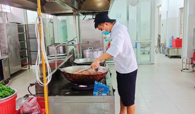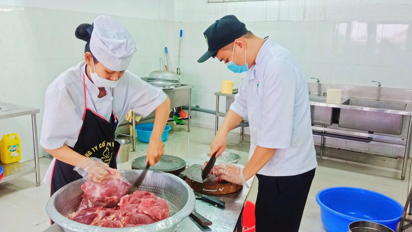 Để đảm bảo an toàn, nhà trường phối hợp với Công ty cổ phần thực phẩm và chế biến suất ăn Hoa Sữa chuẩn bị kỹ các điều kiện về cơ sở vật chất, bếp, đội ngũ nhân viên. Theo đó, khu vực bếp sạch sẽ, bố trí không gian thoáng, đảm bảo khi chế biến. Bên cạnh đó, các nhân viên nhà bếp đều được trang bị đầy đủ trang phục bảo hộ đảm bảo vệ sinh khi nấu nướng.