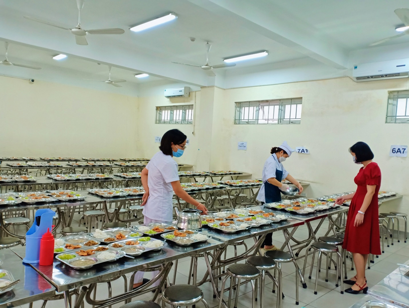 Đặc biệt, trước giờ ăn của học sinh, nhà trường thường xuyên kiểm tra, giám sát việc soạn, chia thức ăn và nhân viên y tế của trường tiến hành lưu mẫu thức ăn 24h nhằm đảm bảo an toàn và chất lượng trong từng bữa ăn cho học sinh.